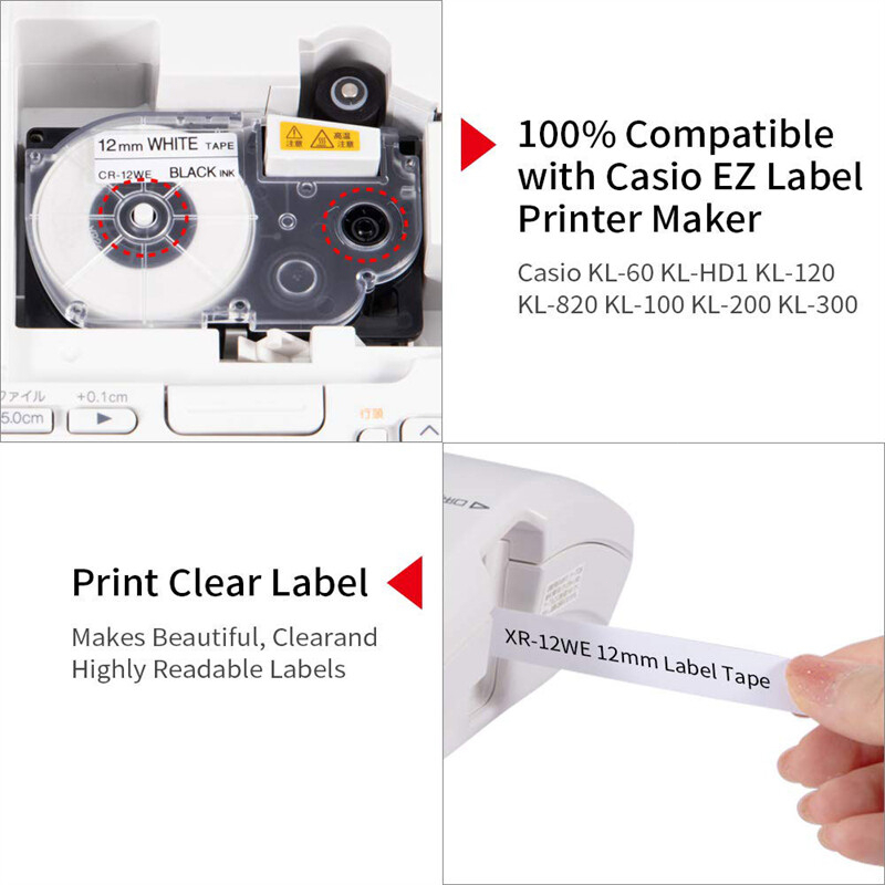 BYZ TAPE【Ready Stock】6mm 9mm 12mm Compatible Casio Label Tape XR Tape XR12WE XR12X XR12YW XR9WE XR6WE for Casio Label Maker KL-60 KL-120 KL-70 KL-750 KL-8100 KL-8200 Label Machine