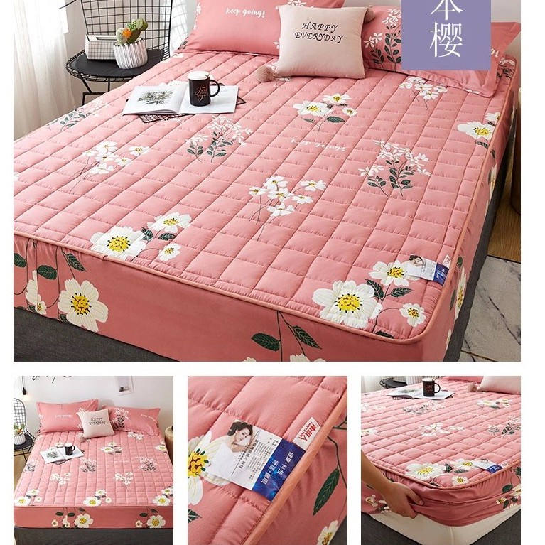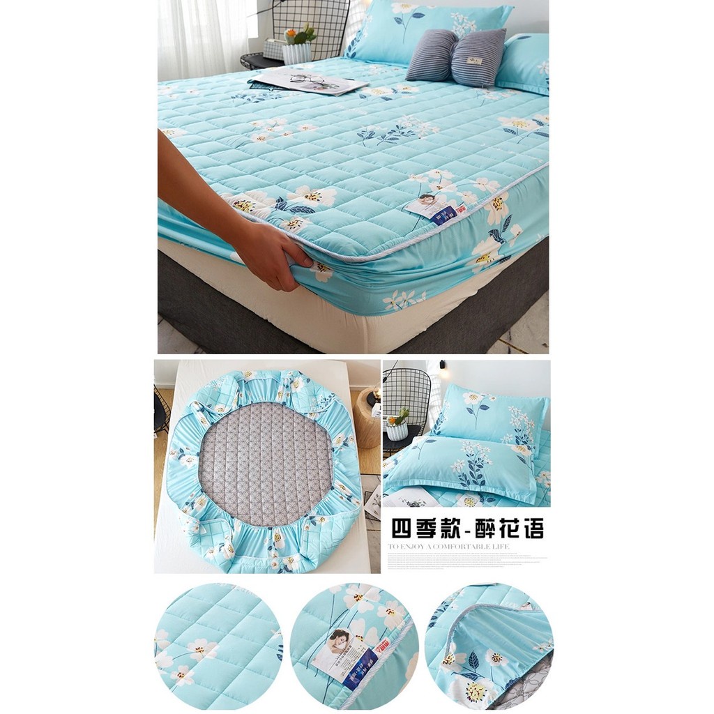 Cadar Set Queen/King Fitted Bedsheet With Cotton Anti Slip Mattress Cover Ready Stock