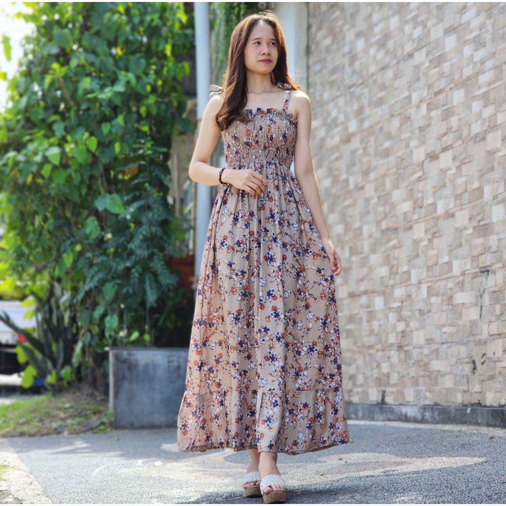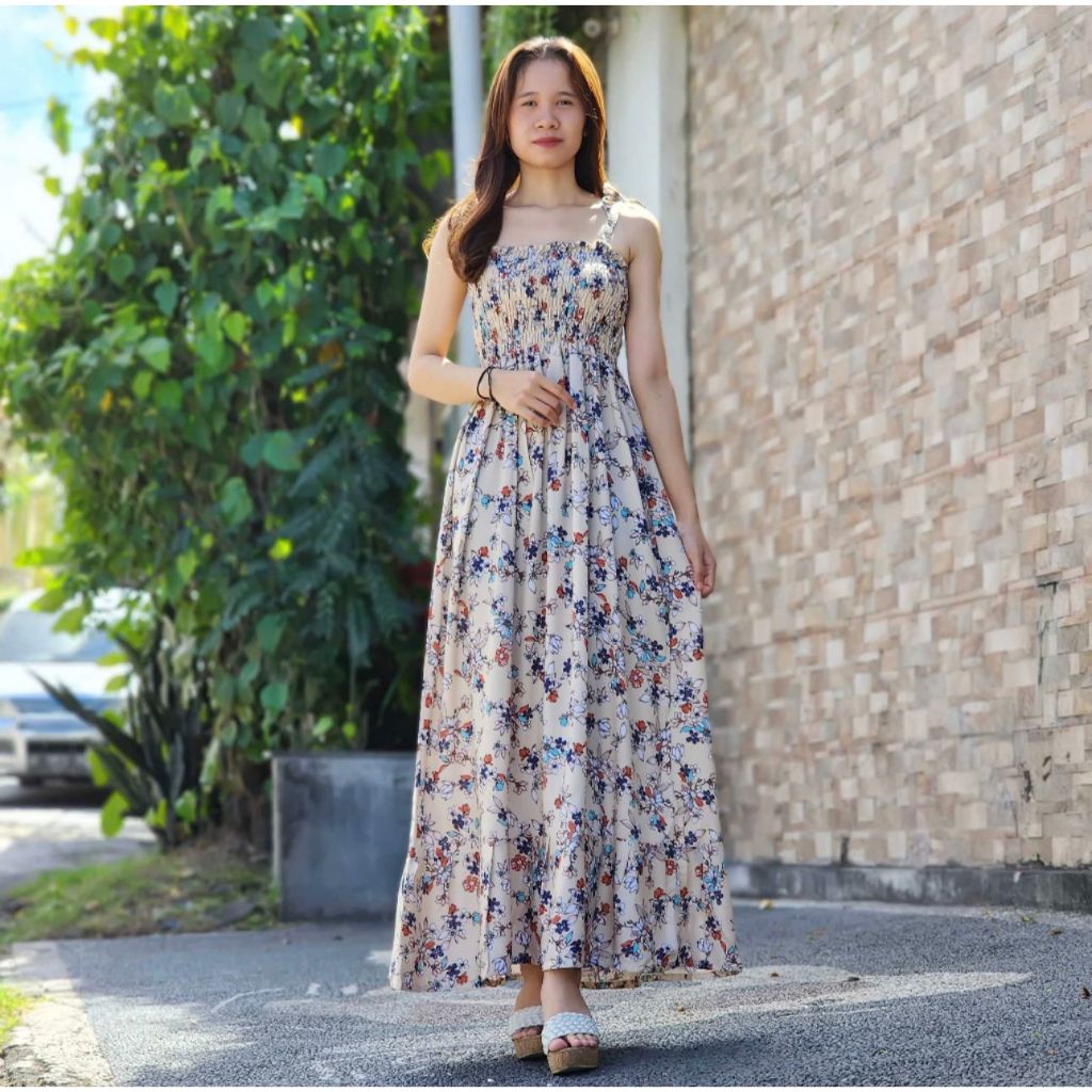 CANDAKENSI WOMEN'S STRAP DRESS ANKLE-LENGTH TANKTOP DRESS LONG BABYDOLL/ Long Ayuna Dress with Ruffles