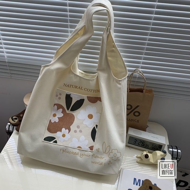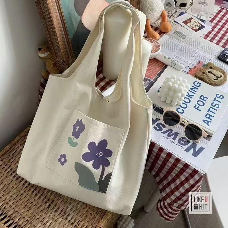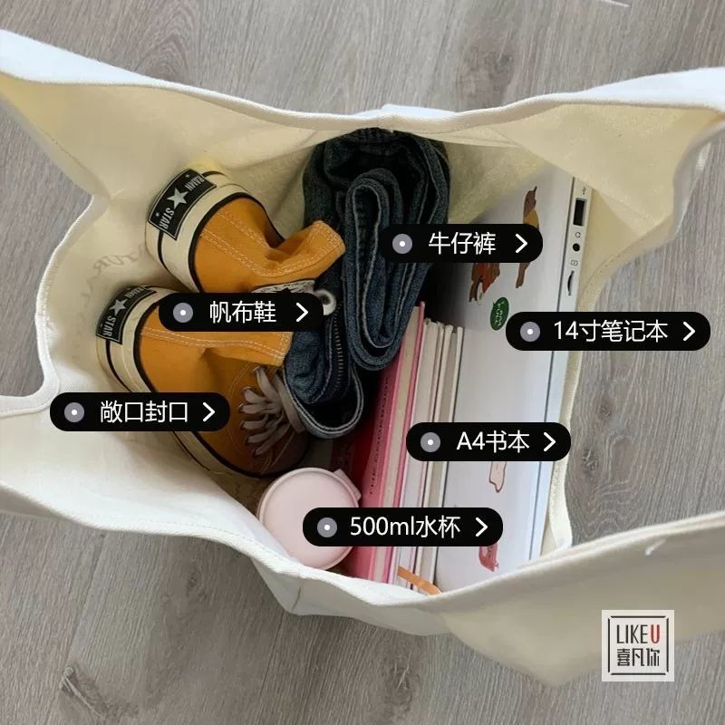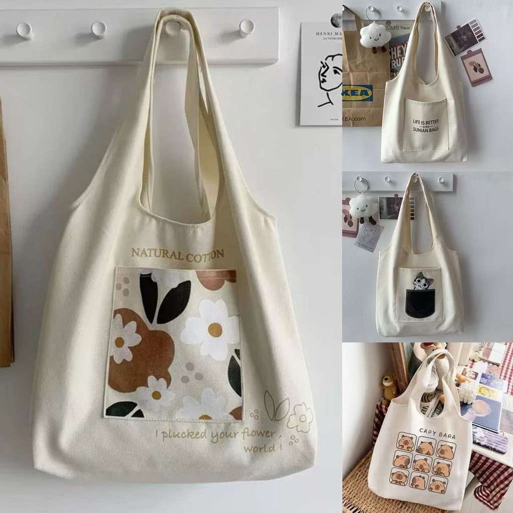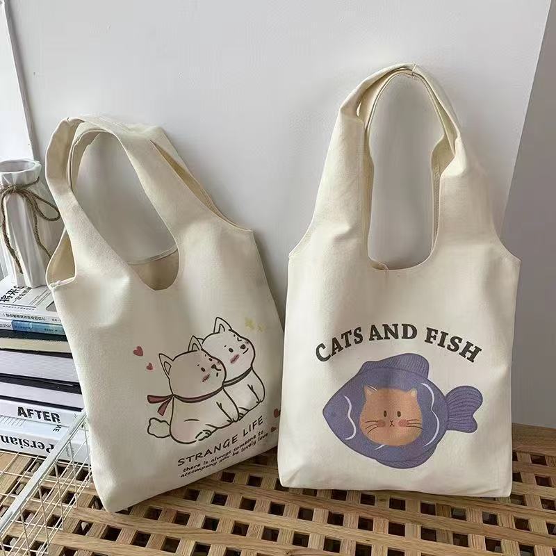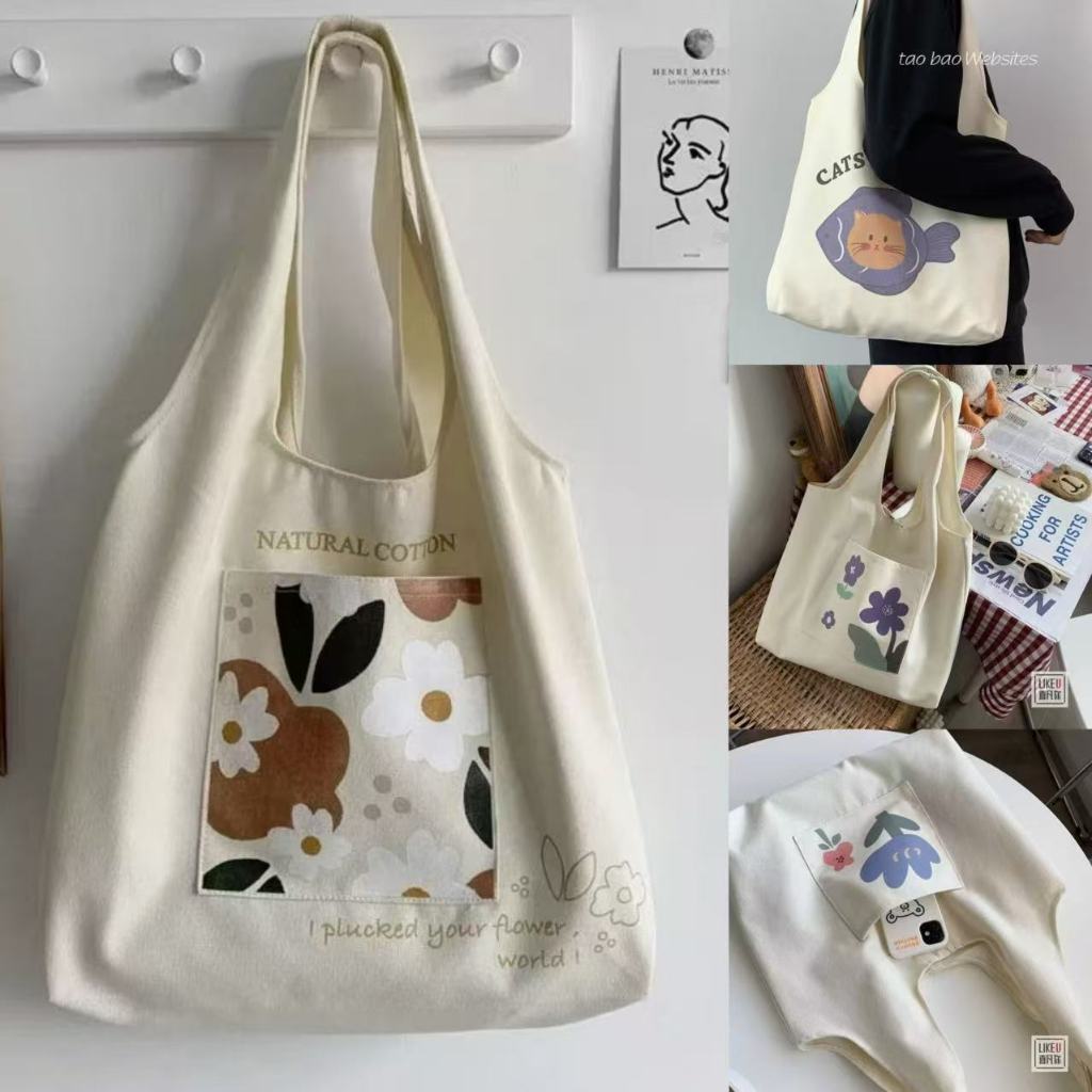 Canvas temperament large-capacity Bag Plain Tote Bags Cotton Student Beg Tuisyen Pelajar Women Shopping Shoulder Totebag