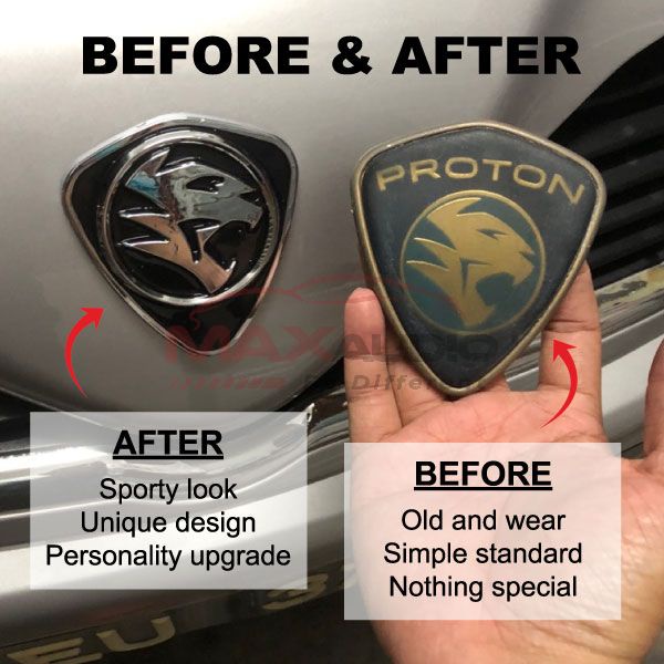 Car Emblem PROTON SAGA BLM SE FL FLX SV Logo 3D Tiger No Color Fade Front Rear Premium Chrome Black Carbon ABS Sticker