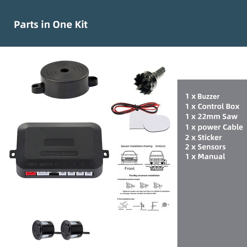 Car Parking Sensor Kit Buzzer 2 Sensors 22mm Reverse Backup Radar Sound Alert Indicator Vehicle Alarm Systems Probe 12V