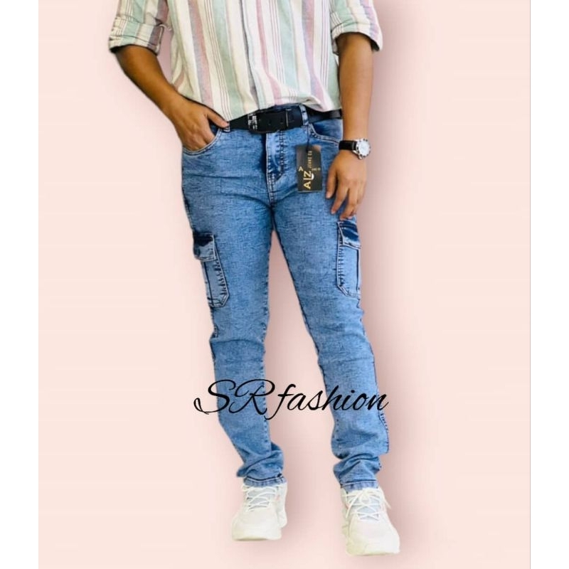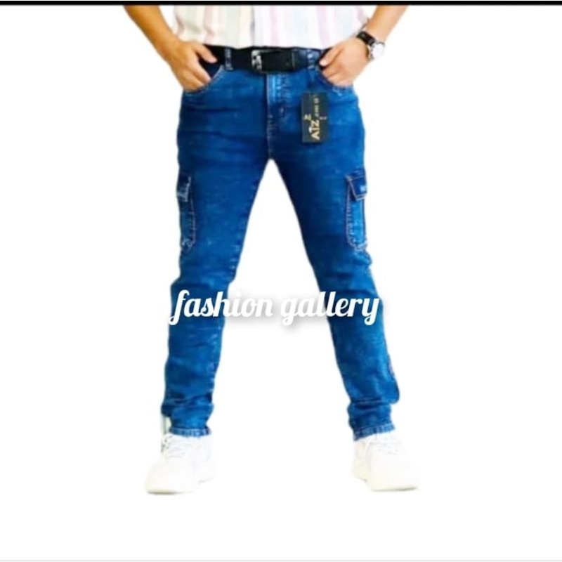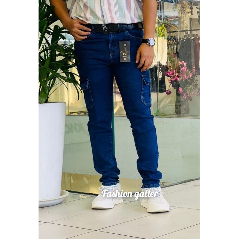 Cargo 6 pocket Slim fit Jeans Pants for Men's / Lelaki ( Unisex) kain gettah.