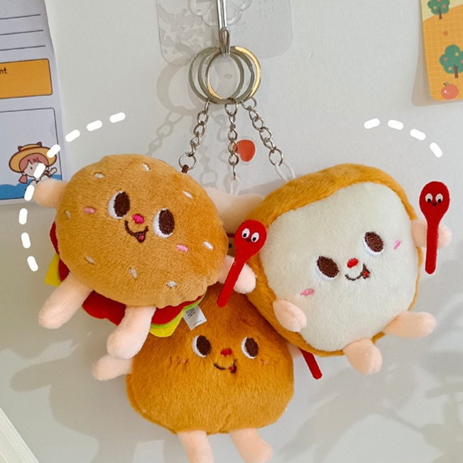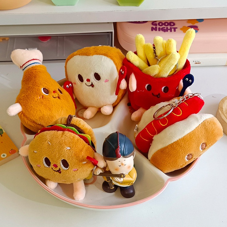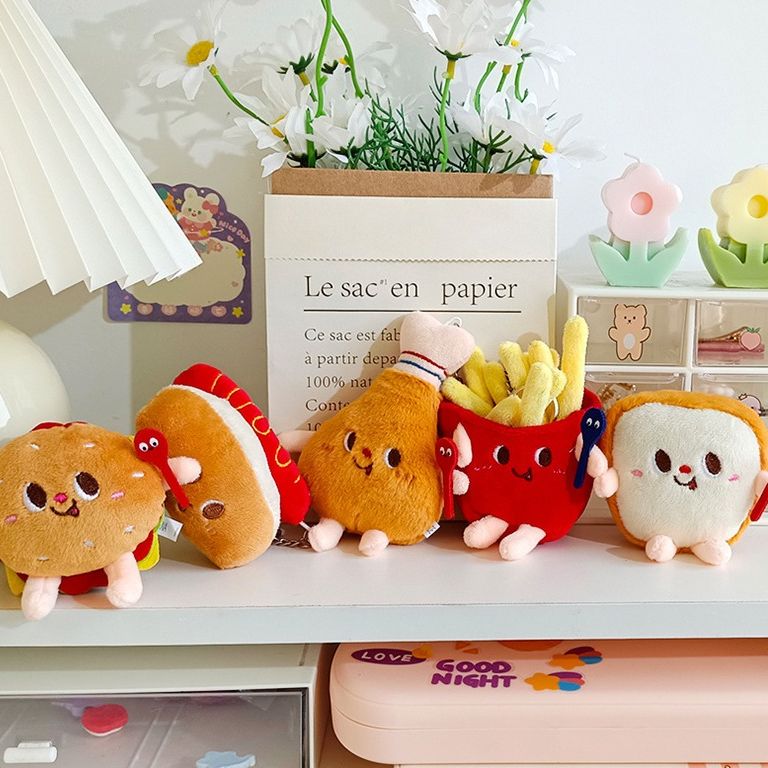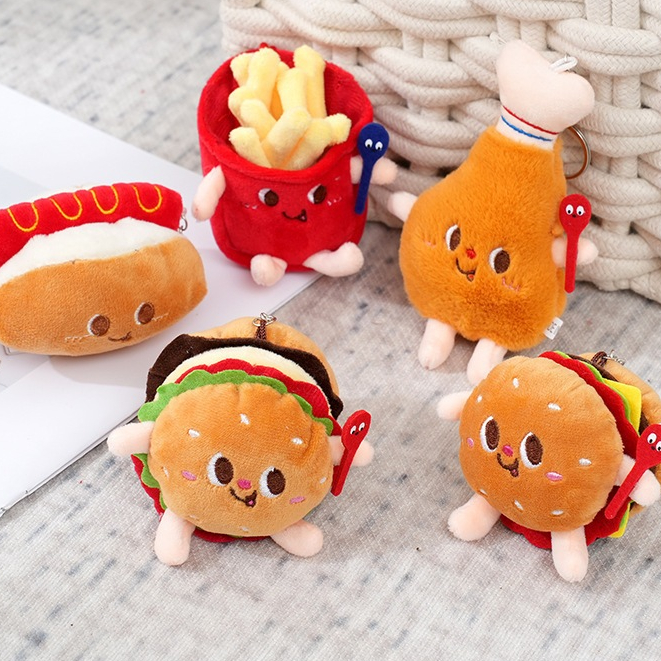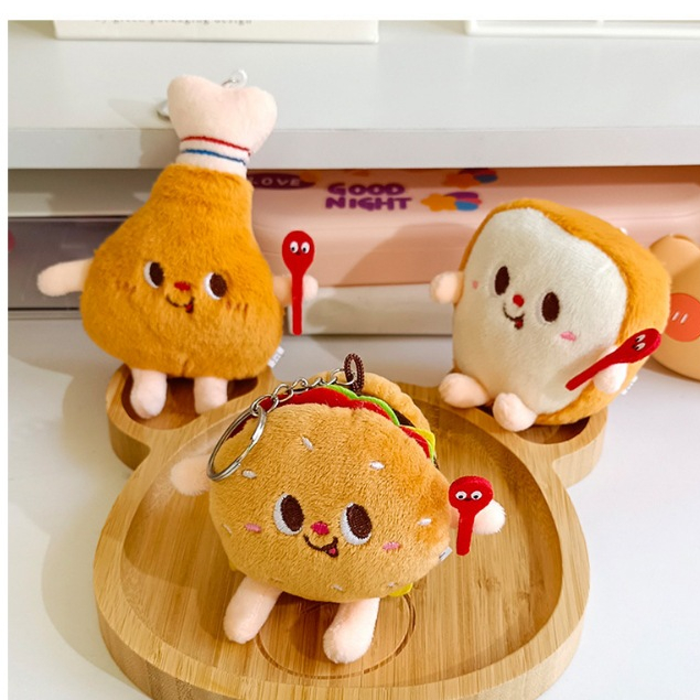 Cartoon Food Key Chain Cute Mini Plush Doll Hamburg Chicken Leg Bag Pendant Student Gift