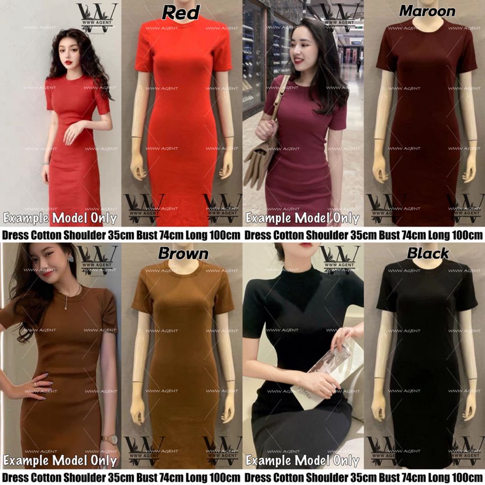 Casual Fashion Plain High Neck Short Sleeve Women Dress Cotton Lengan Pendek Collar Tinggi Dress Wanita
