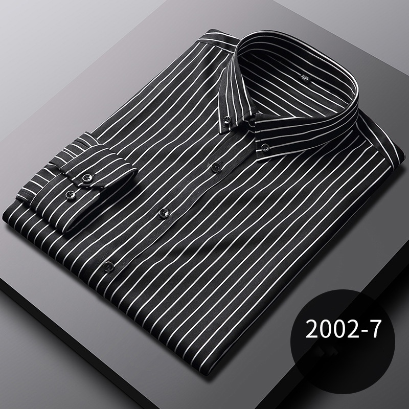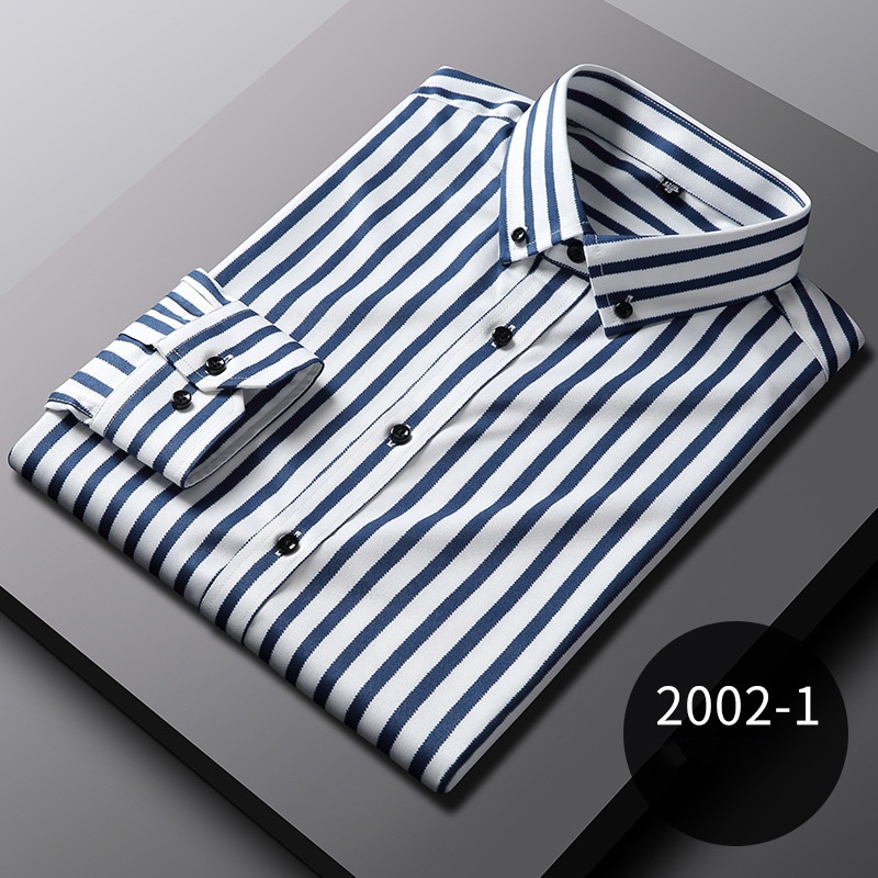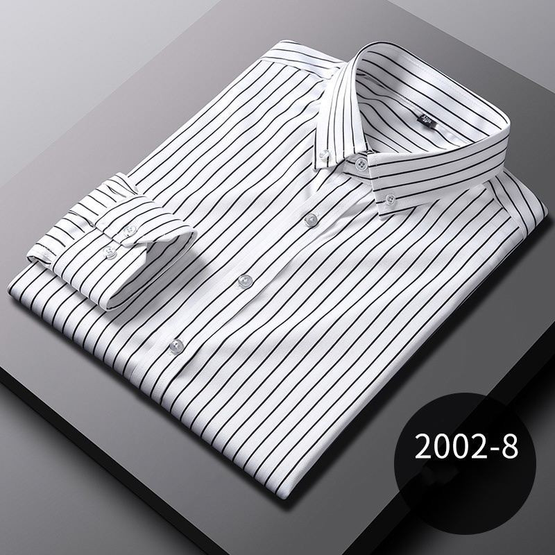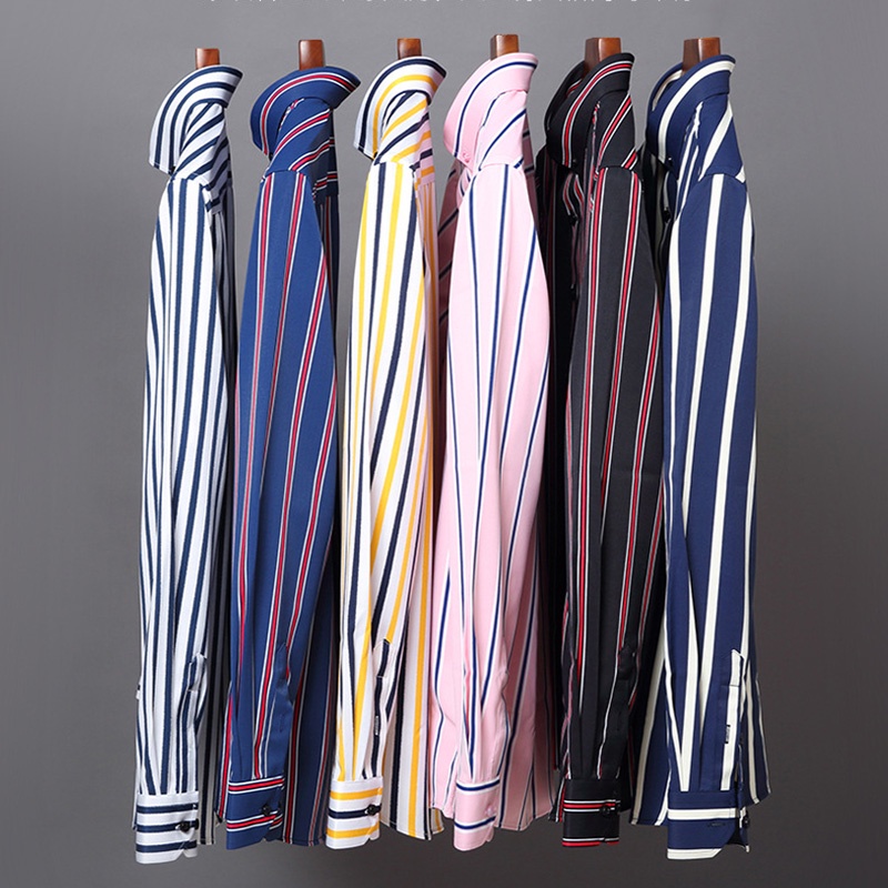 Casual Long Sleeve Non Iron Striped Korean Style Social Office Men Dress Shirt