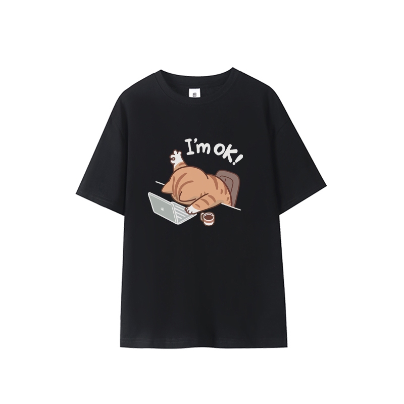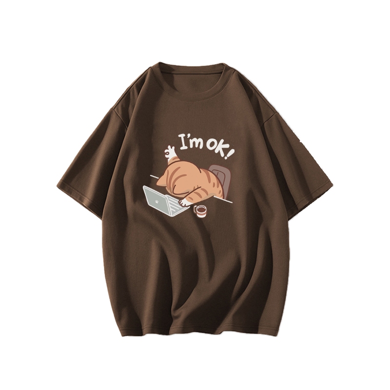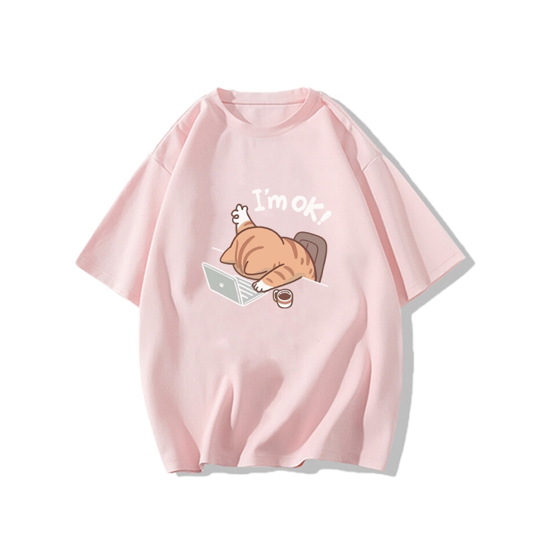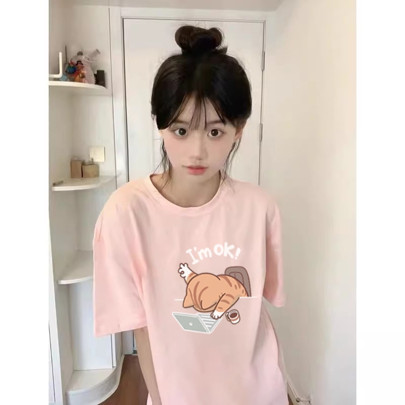 Casual Loose Fit Cat Print Women's Oversized Round Neck Short Sleeve T-Shirt - 100% Pure Cotton
