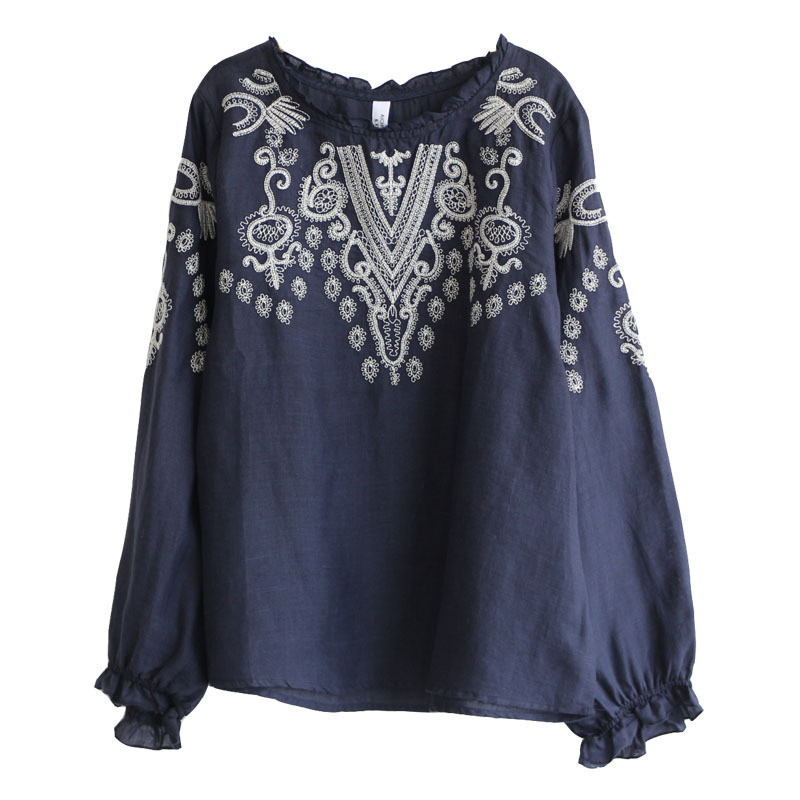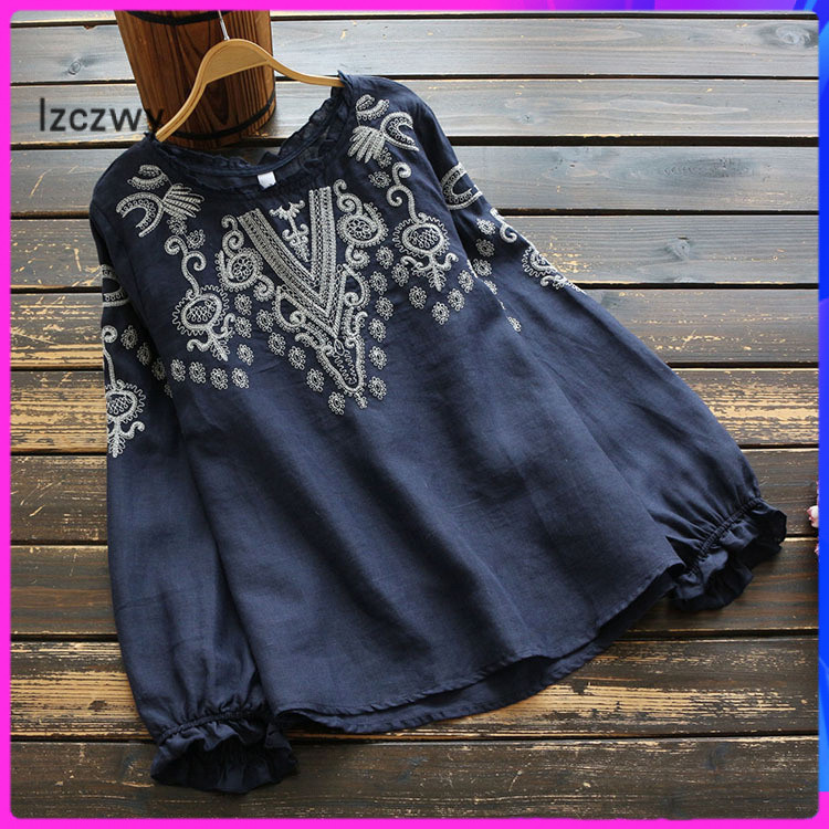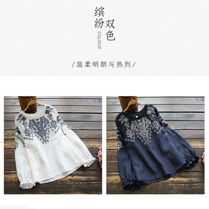 <![CDATA[2025 New Style Ethnic Embroidered Cotton Linen T-Shirt - Loose Fit Women]]>