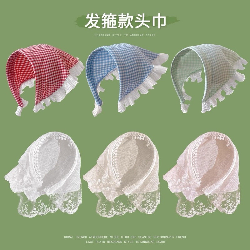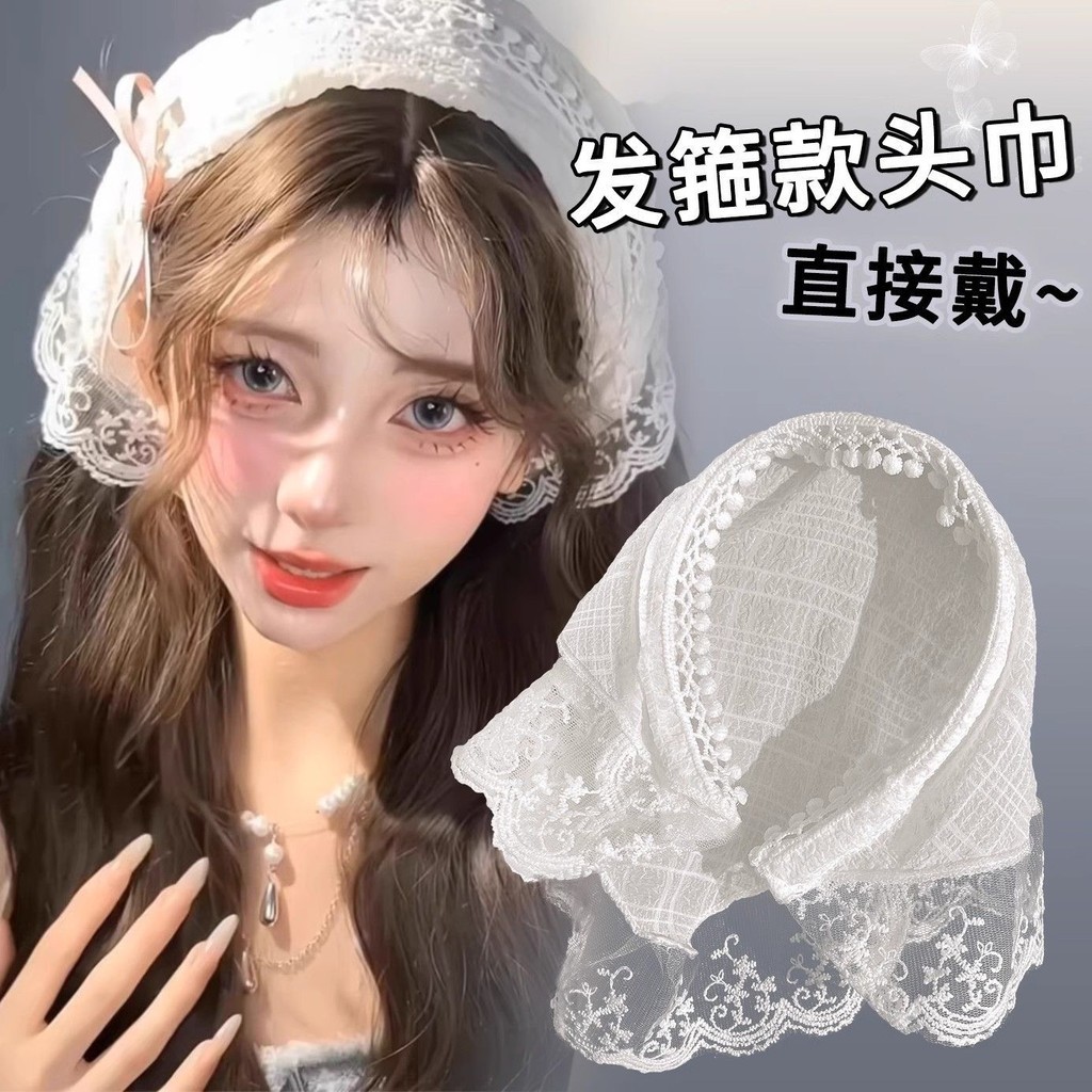 Cekak Rambut Kain Lace scarf women white lace headwear French bun headband Hair Accessories Hair Band Retro田园风发箍头巾花边头戴