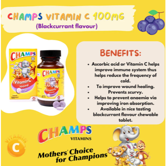 Champs Children Vitamin C 100mg 100's BLACKCURRANT