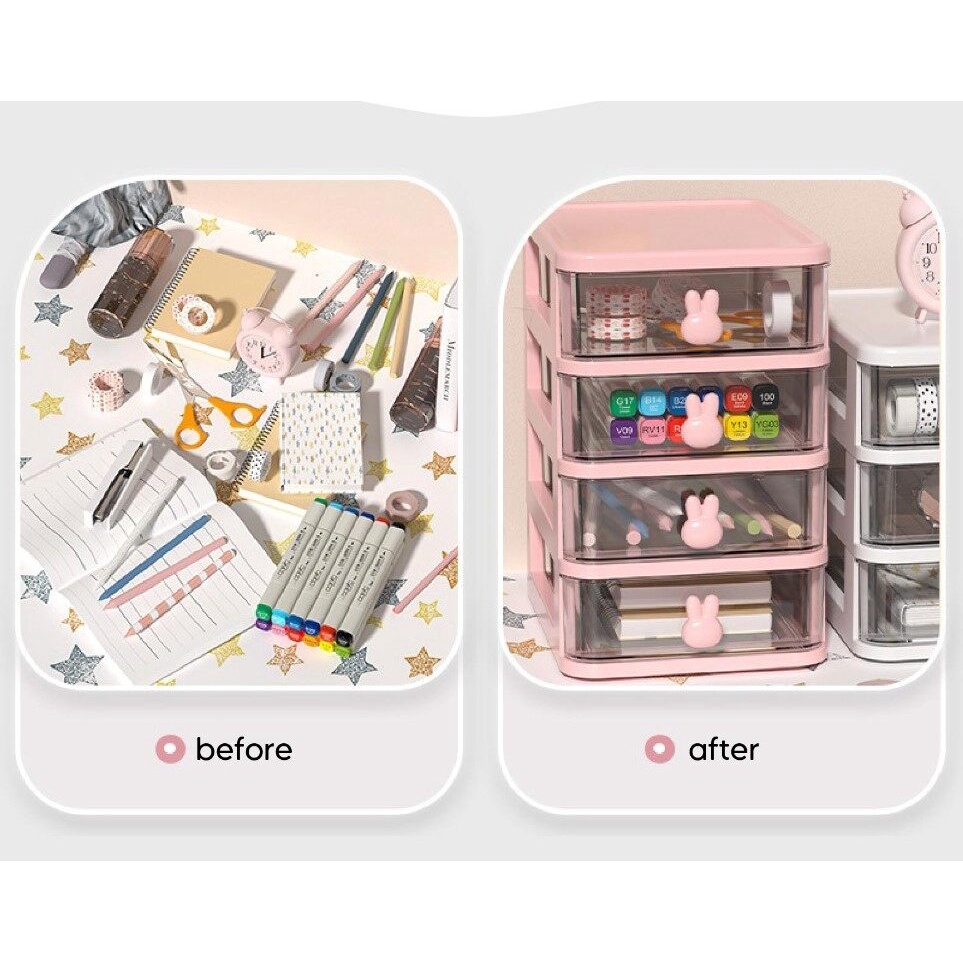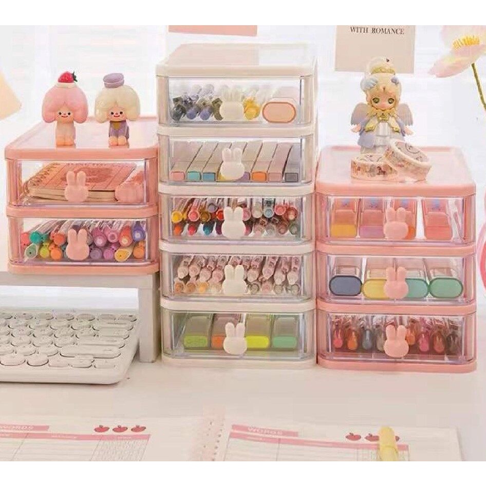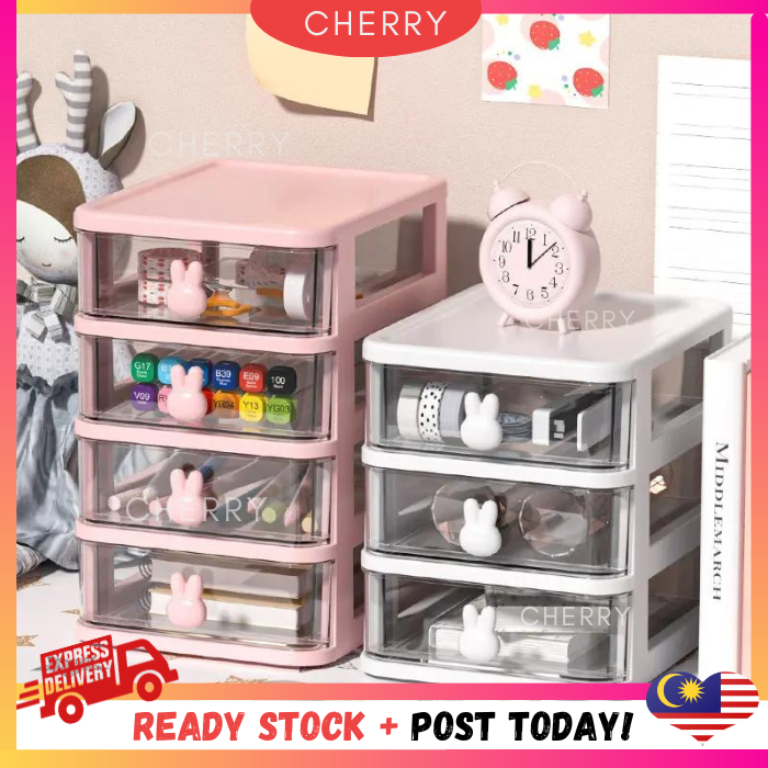 ?CHERRY? 5 Tier Transparent Desktop Storage Drawer Desk Organizer Office Home Stationery Cosmetic Storage Box Laci Meja