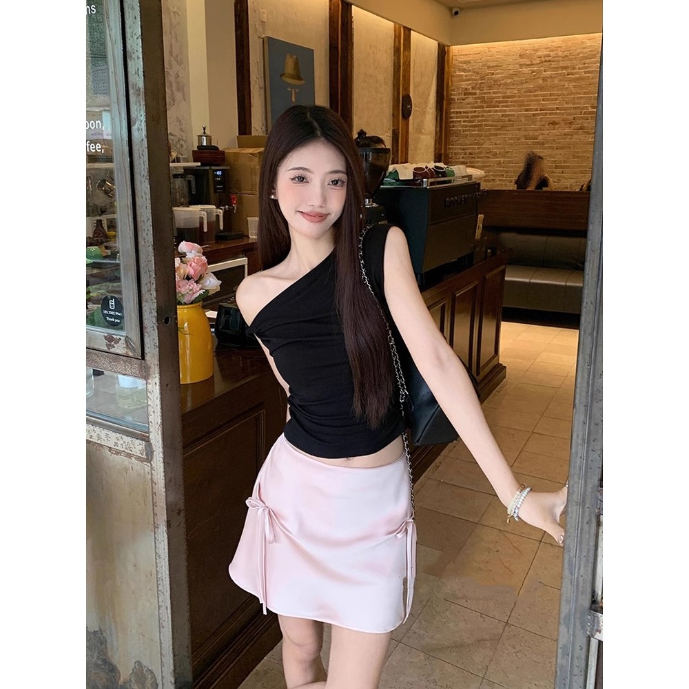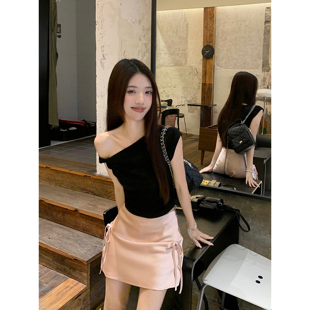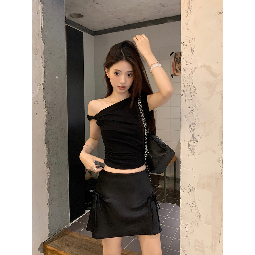 Cherryshop ? Ready Stock ? Cropped Tops For Women Stretch Fabric Pleated Design Short Sleeves Off-shoulder New Style Sexy Skinny T-shirt(White/white)