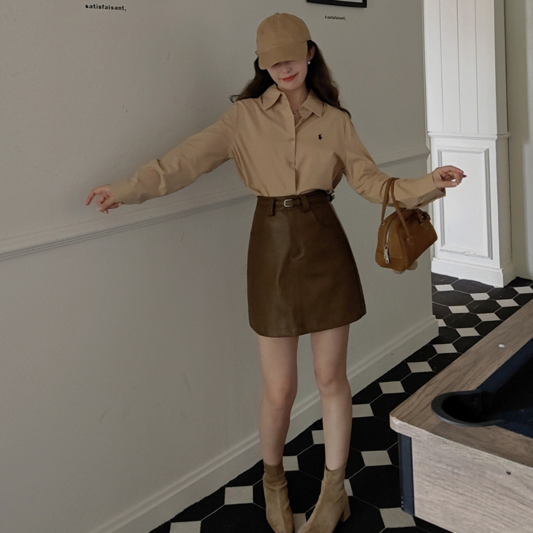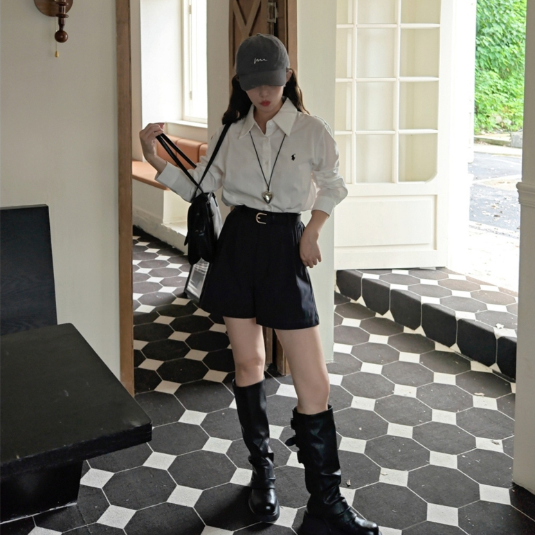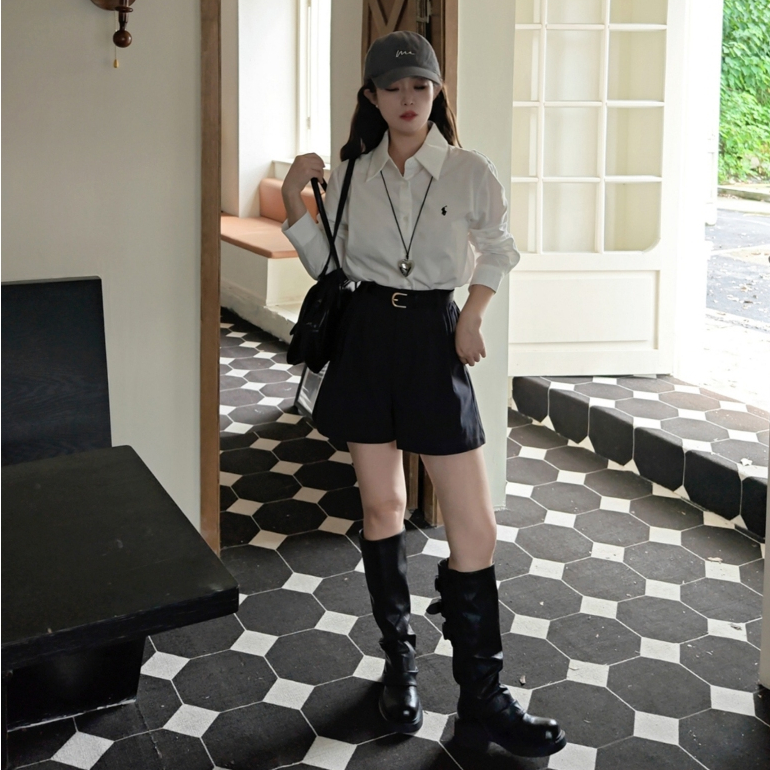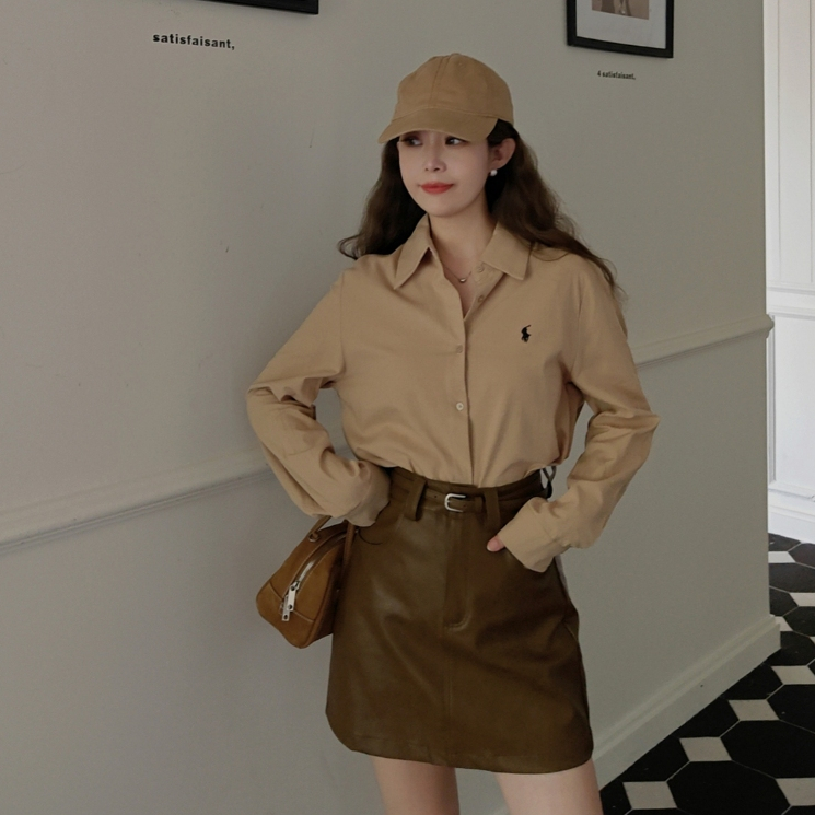 Cherryshop ? Ready Stock ? Korean Style Loose Long Sleeve Shirt Women Embroidery Pattern Oversized Casual Blouse Baju Baju Wanita Lengan Panjang Kemeja (White/Khaki)