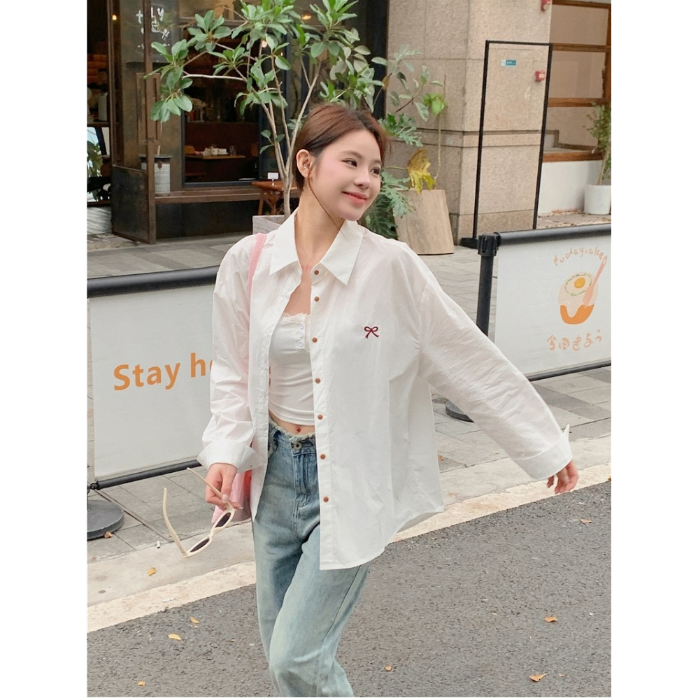 Cherryshop?Ready Stock?Korean Style Women Ladies Loose Long Sleeve Shirt Blouse Baju Wanita Lengan Panjang Embroidery
