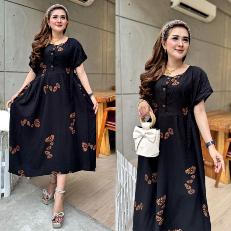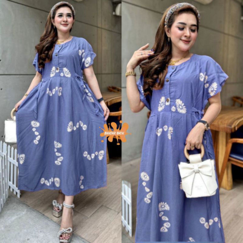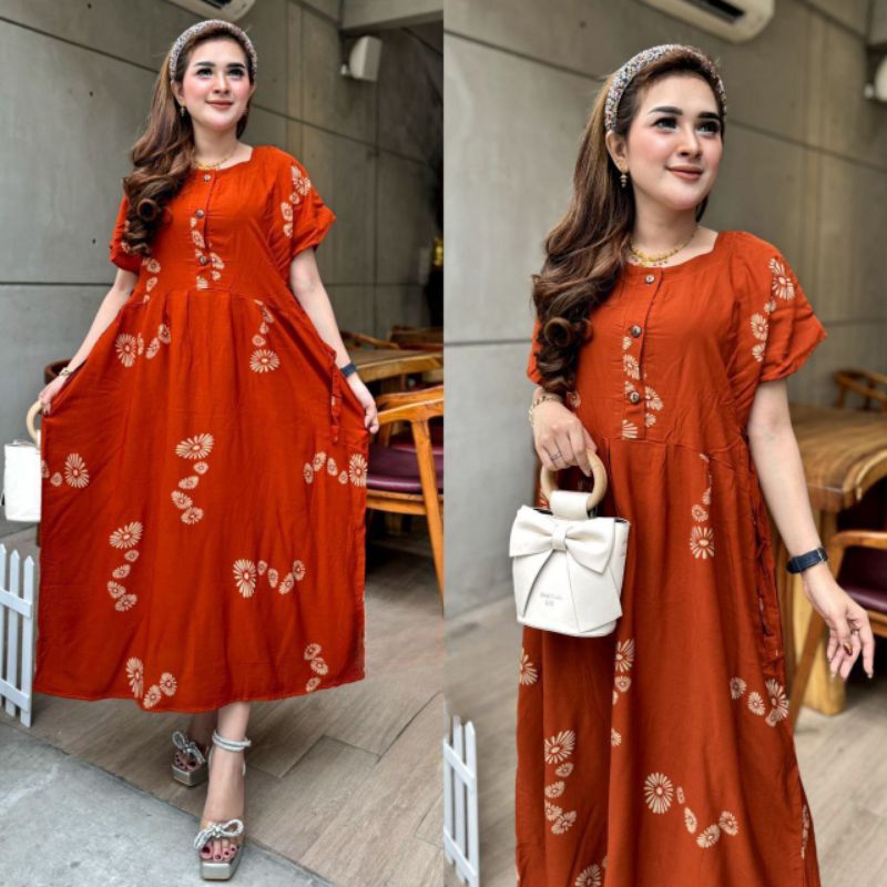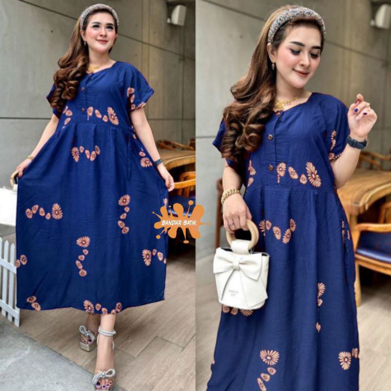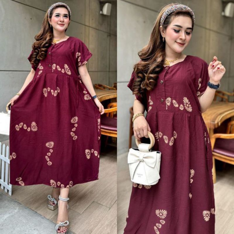 Chibi Jumbo Daster LD 120cm - Daster for Pregnant Women and Nursing Homes with Front Buttons - Chibi Jumbo XXL Daster LD 120 Viral Trendy - Chibi Jumbo Daster with Viral Shell Motif - Latest Viral Daster 2024 Unique Motif Home Dress for Nursing and Pregna