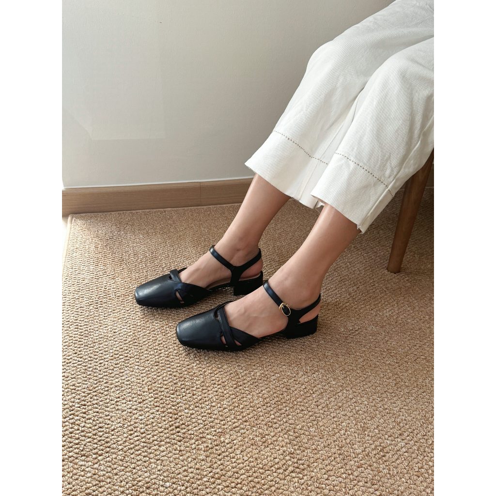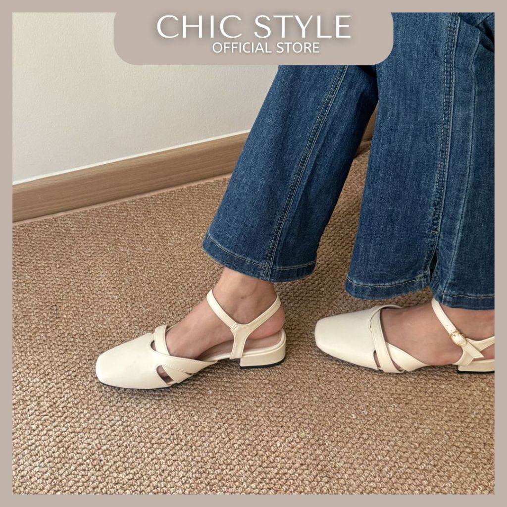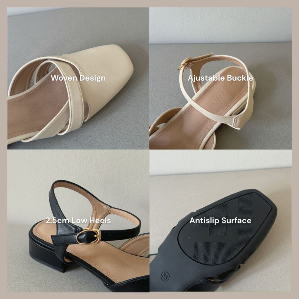 CHIC STYLE Briella Interlocking Sandals | Casual Close Toe Low Heels | Kasut Wanita Perempuan | Size 35 - 39