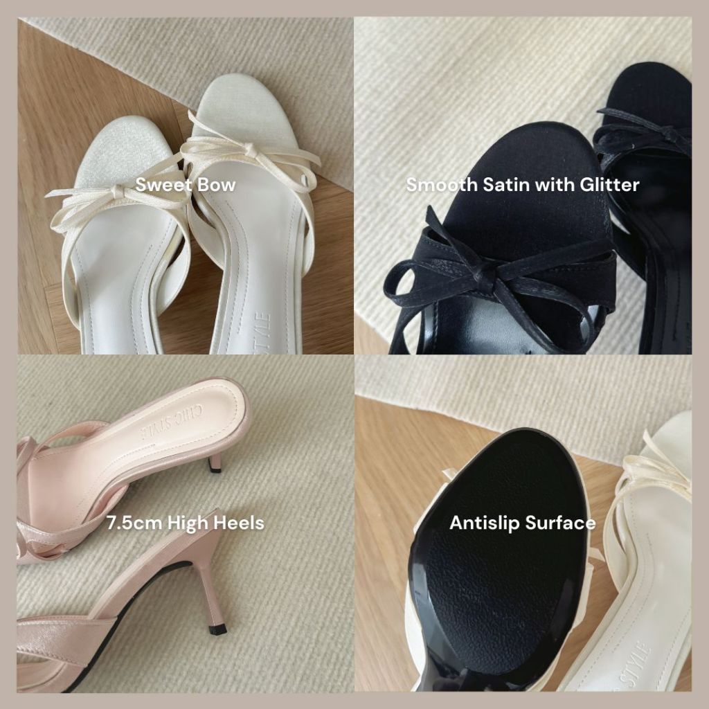 CHIC STYLE Carisa Sweet Bow Heels | ROM Dinner Heels Nikah | Kasut Wanita Perempuan | Size 35 - 39