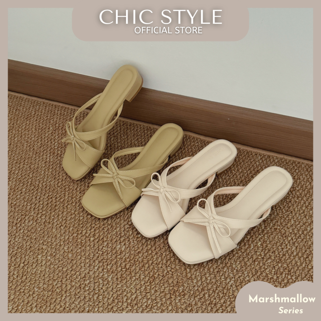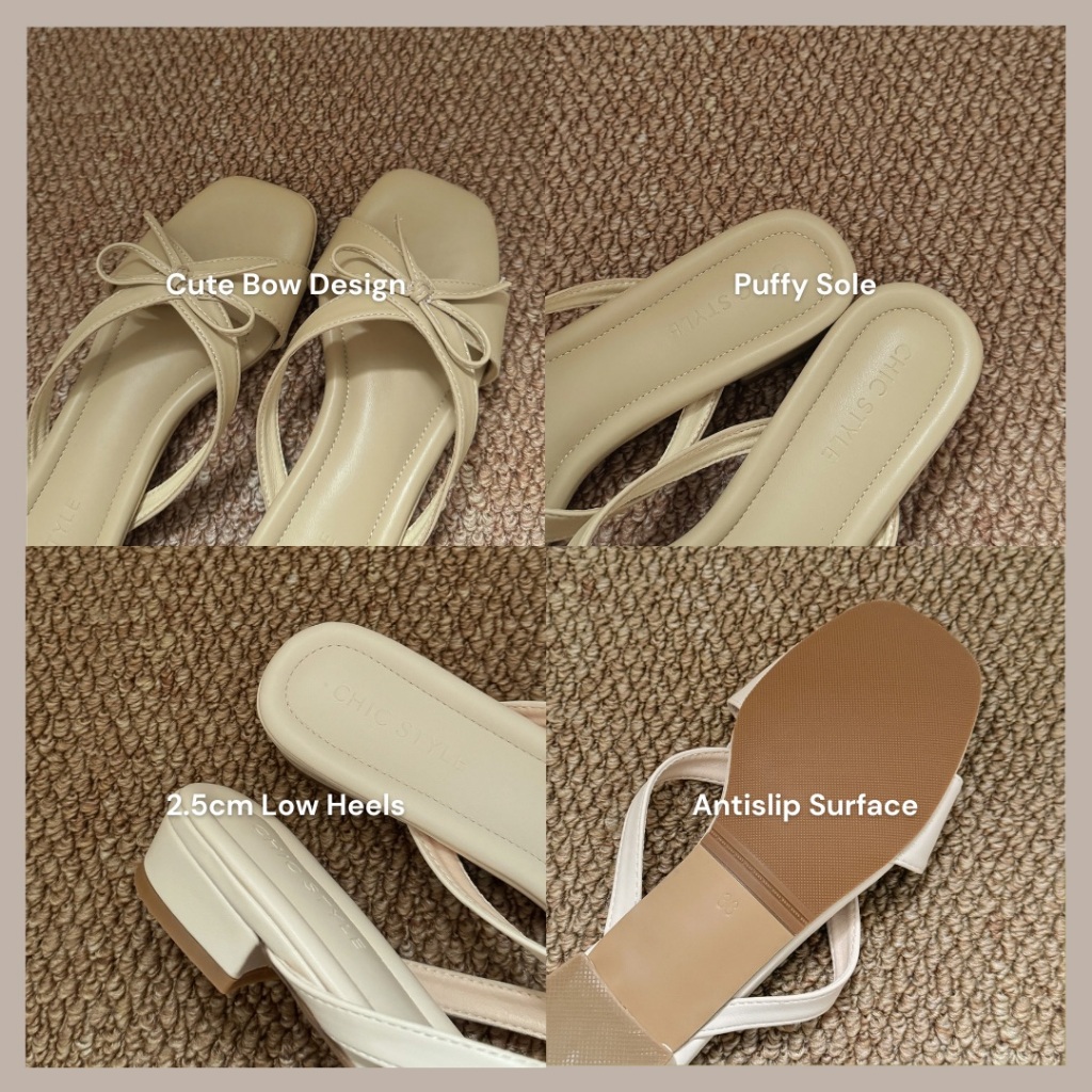 CHIC STYLE Daniella Cute Bow Comfy Heels | Casual Low Heeled Sandals | Kasut Perempuan Kasut Tumit Rendah | Size 35 - 40