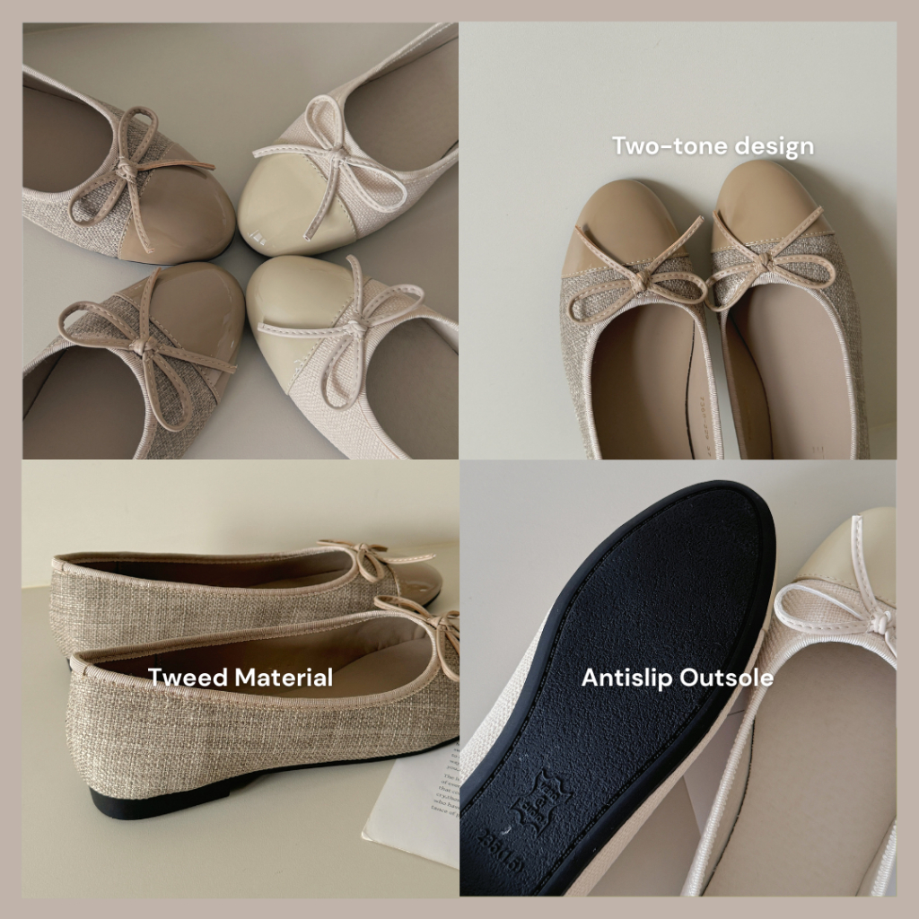 CHIC STYLE Jaclyn Tweed Ballet Flats | Casual OL Workwear | Kasut Perempuan | Size 35 - 39