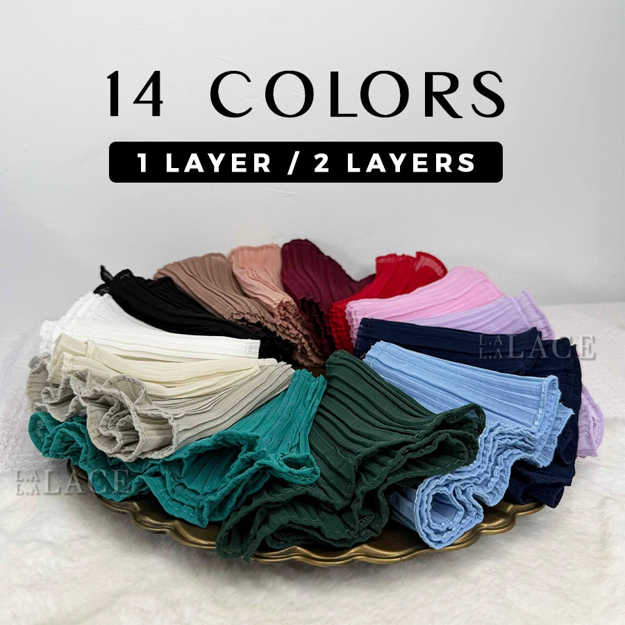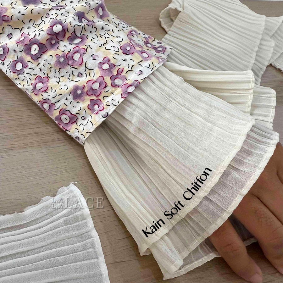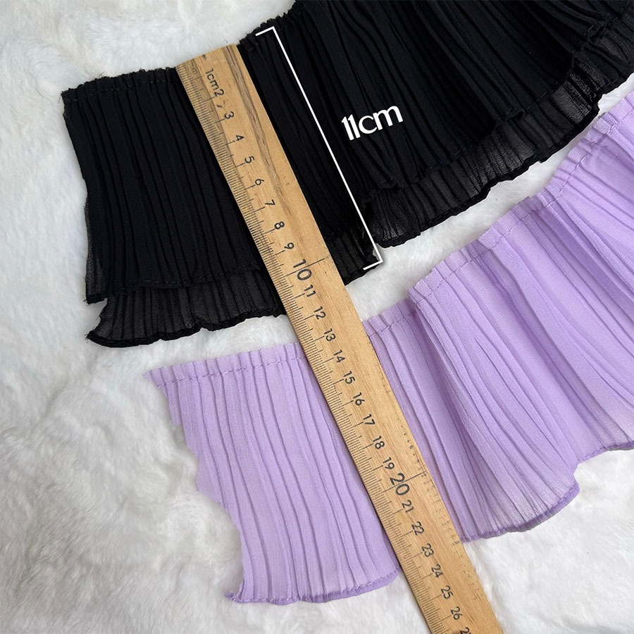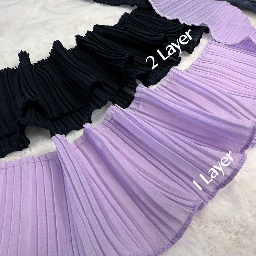 Chiffon Pleated Ruffle Lace 11cm ANNA 1 Layer Double Layer Border Baju Kurung Lengan Collar LALALACE