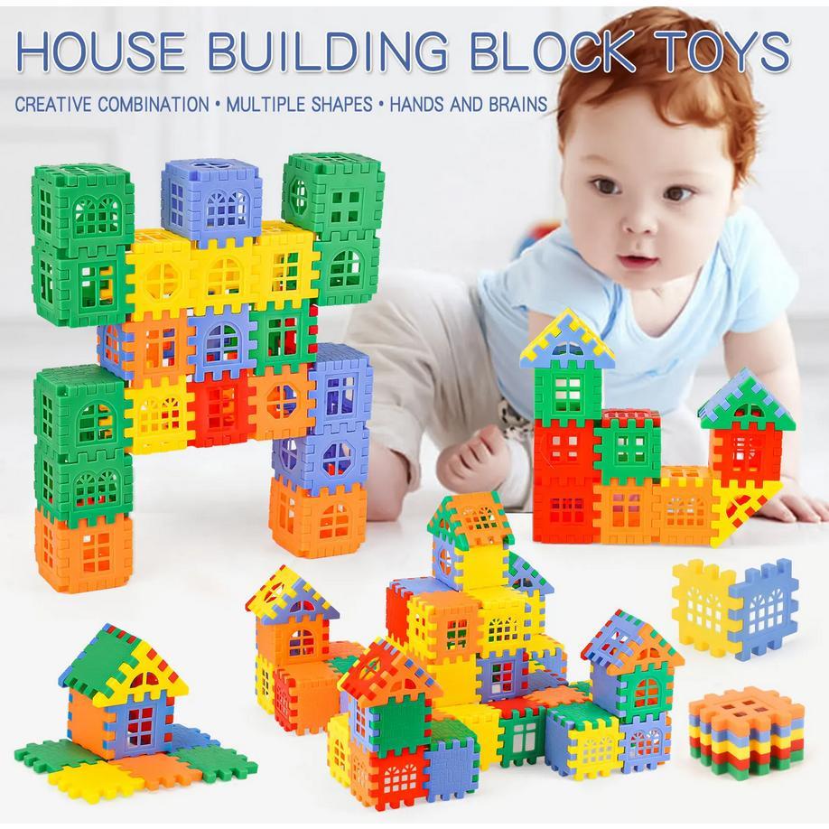 Child Kids Block Toys Assemble Puzzle Educational Toys House Building Blocks DIY Construction Toy Mainan Blok