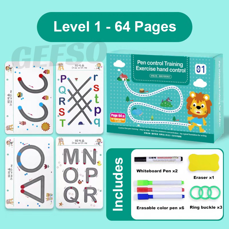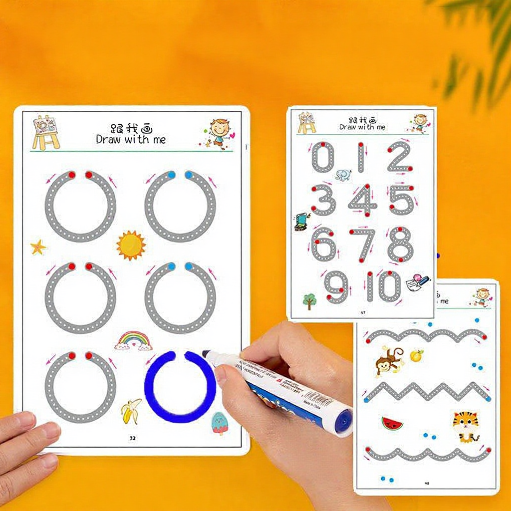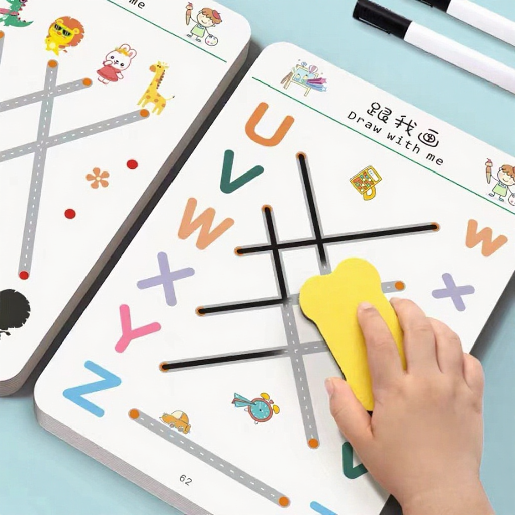 Children Tracing Workbook With Erasable Pen Control Educational Training Toy Stroke Line Point Drawing Thinking Learning Buku 控笔训练本 益智早教 儿童专注力