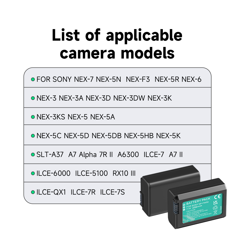CITYORK NP-FW50 2250mAh Sony Camera Battery & 3IN1 Charger For ZVE10 Alpha A6500 A6300 A6400 A6000 A6100 A5000 A3000