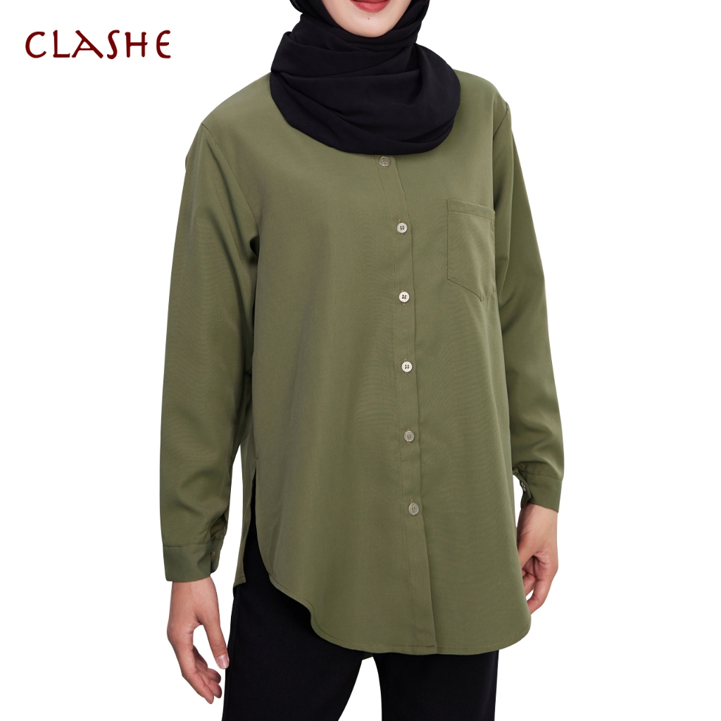 Clashe Blouse S-8XL 40-110kg Shirt Rayon Soft Korean Style Solid Color Single Pocket Long Sleeve Plus Size Women's Top
