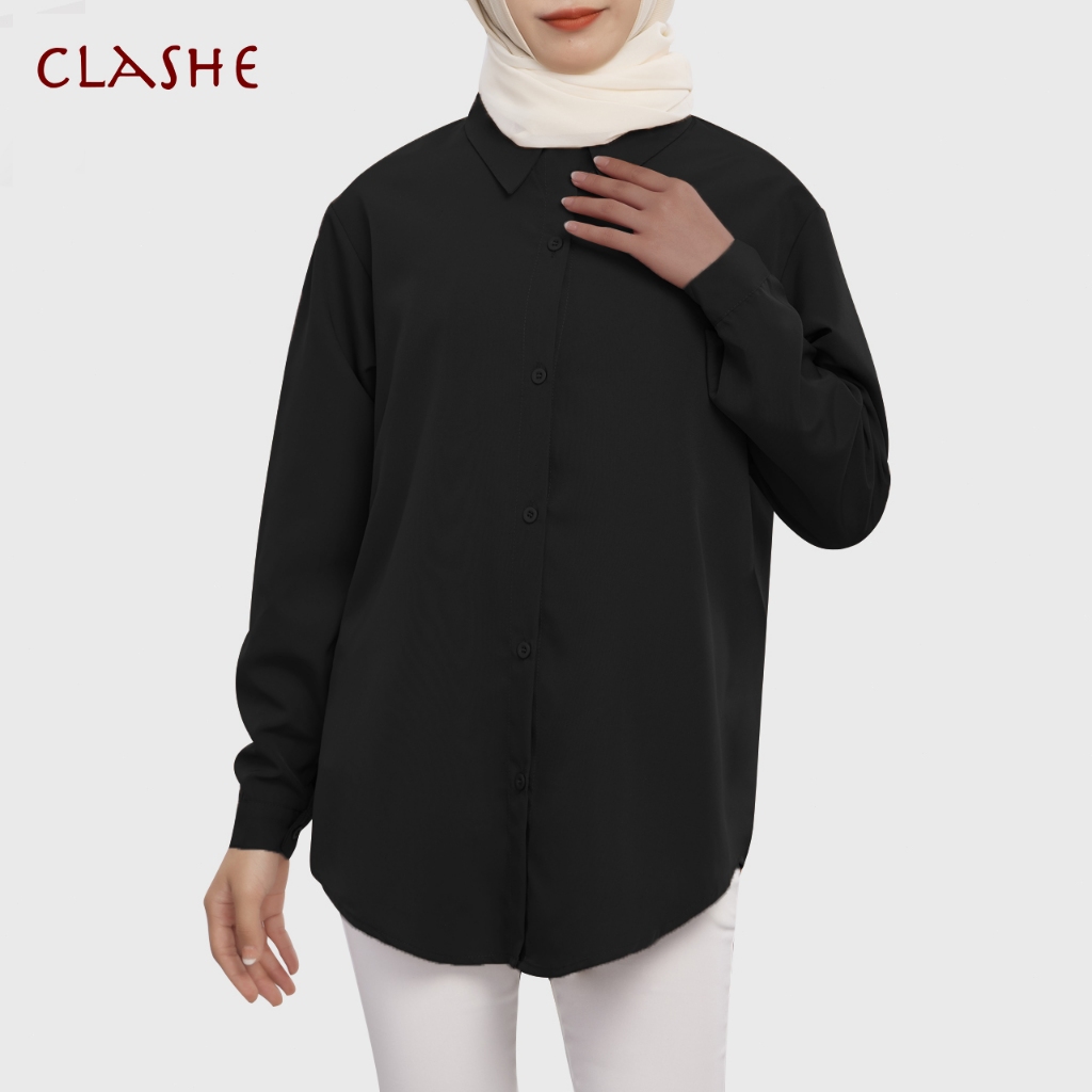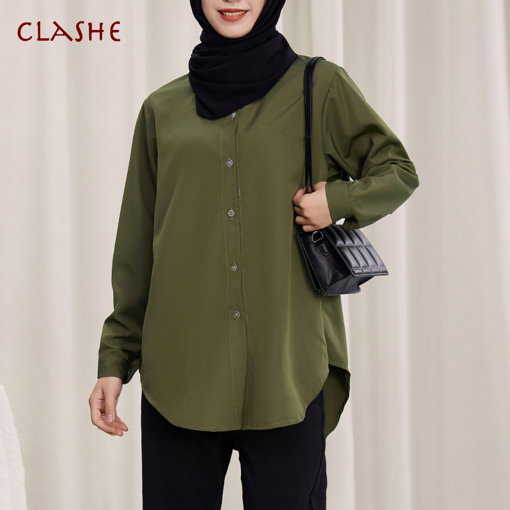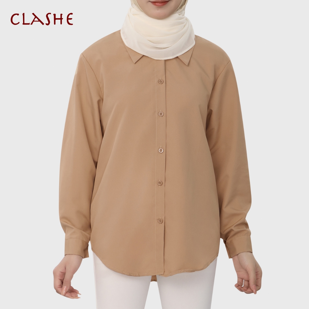 Clashe Blouse Women Lapel Collar Long Sleeved Baju Kemeja Wanita Mid-Length Loose Baju Blouse Viral Terkini