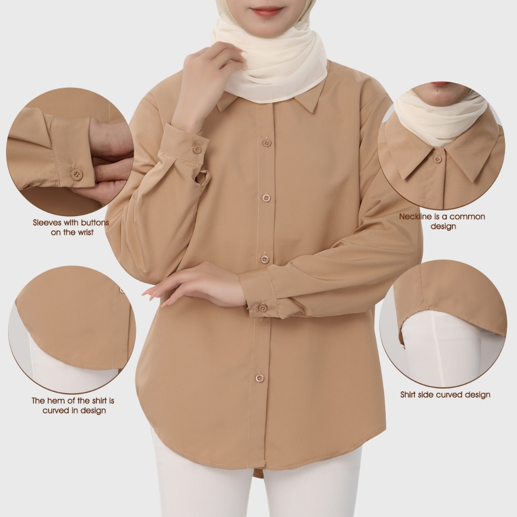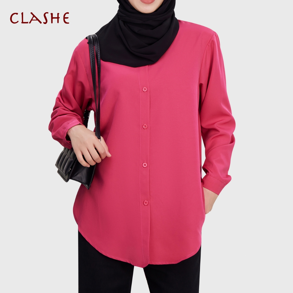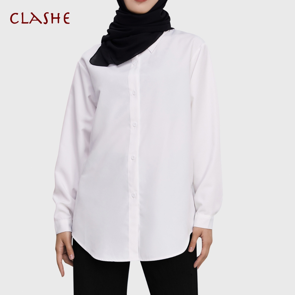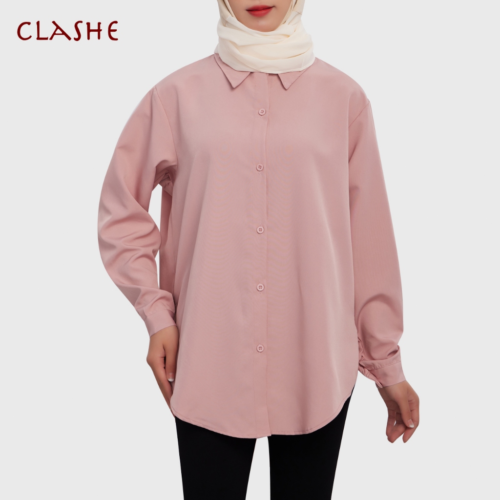 Clashe Blouse Women Lapel Collar Long Sleeved Baju Kemeja Wanita Mid-Length Loose Baju Blouse Viral Terkini