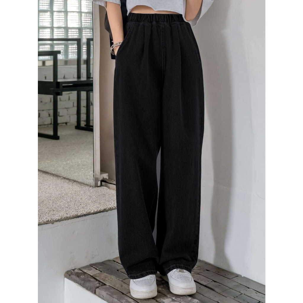CLASHE Straight Cut Jeans Plus Size Wanita Hitam Cutbray Panjang Celana Denim Jeans