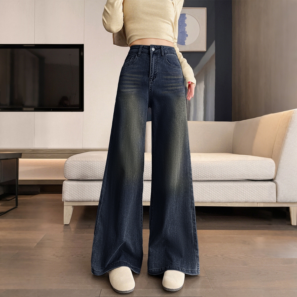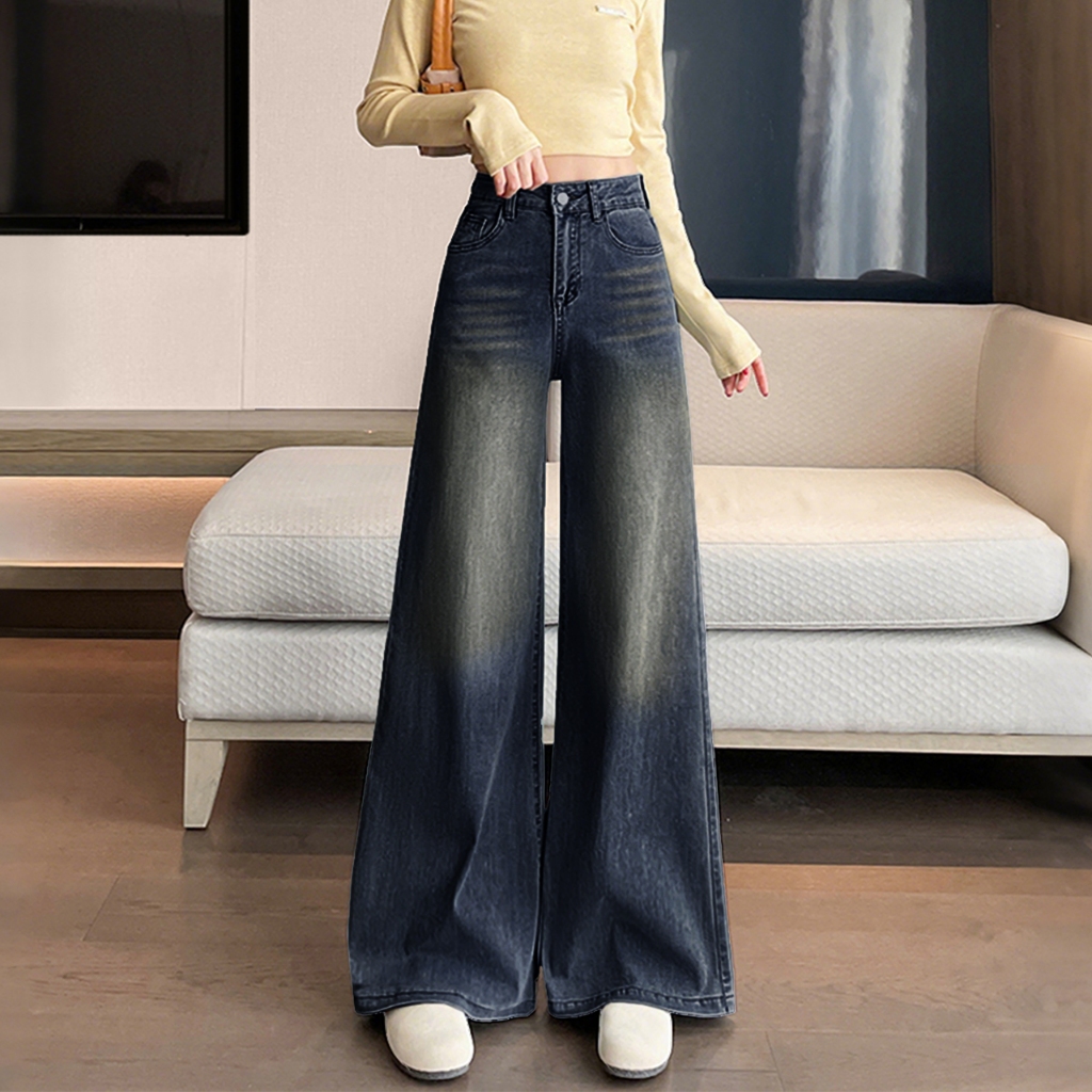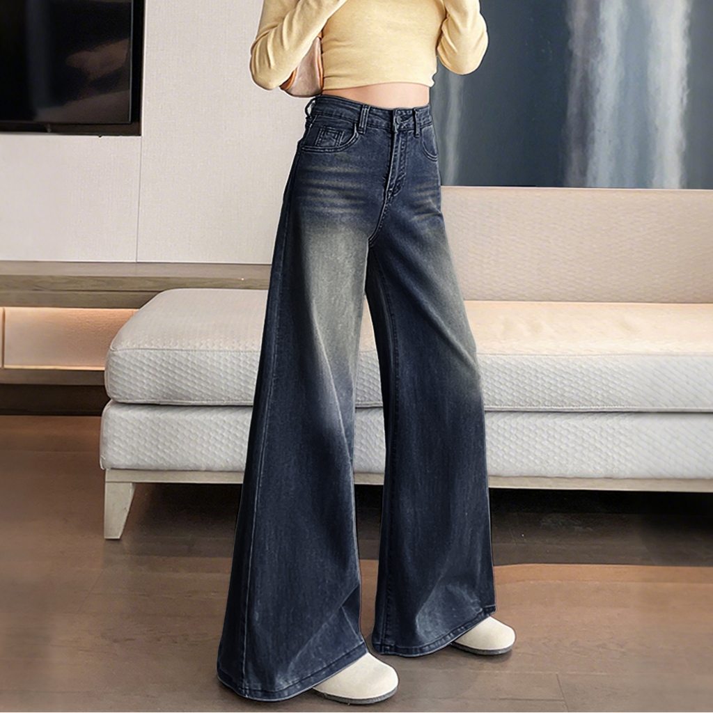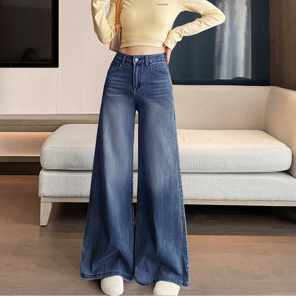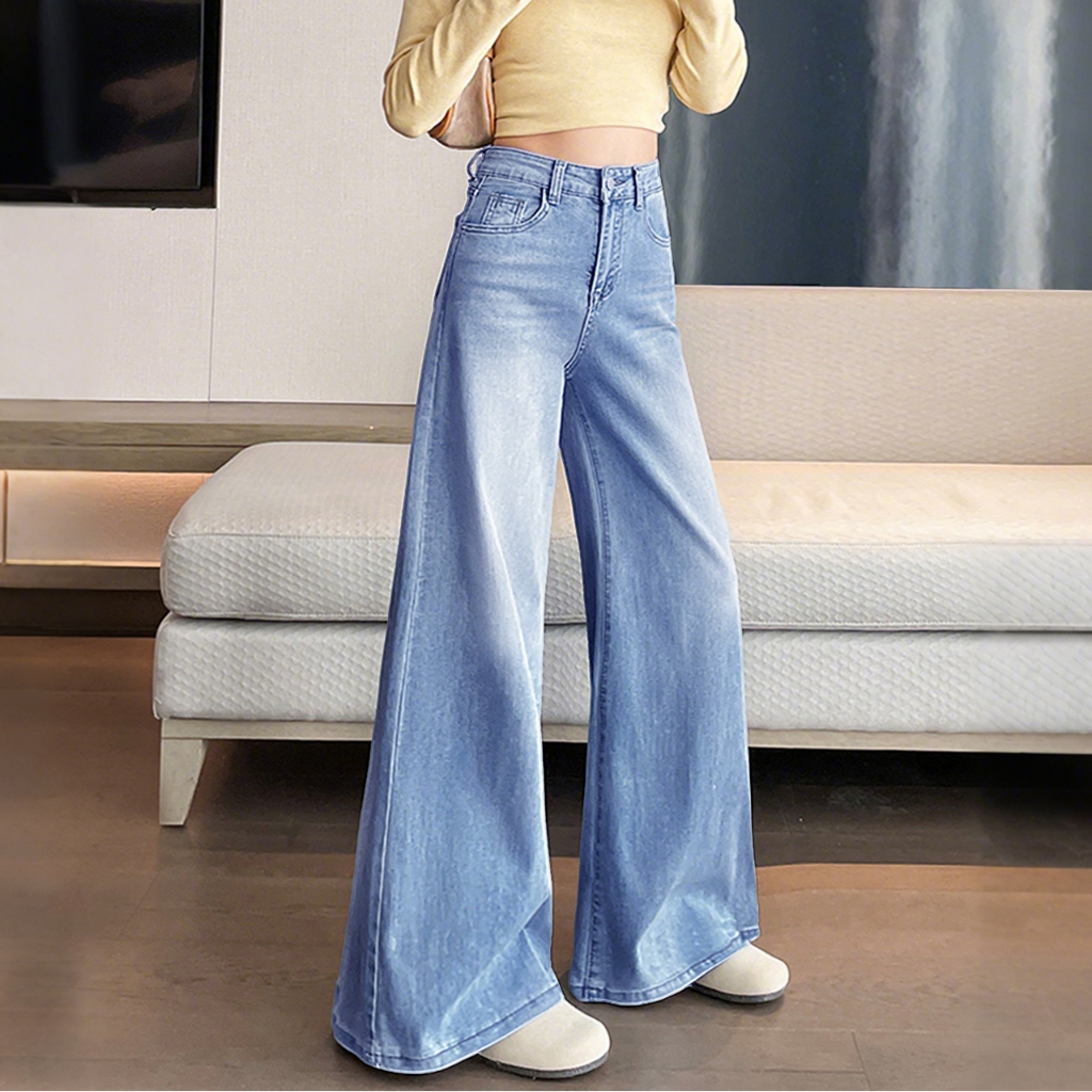 CLASHE Wide Leg Jeans Wanita Casual Pinggang Denim Baggy Pants Plus Size Flare Jeans