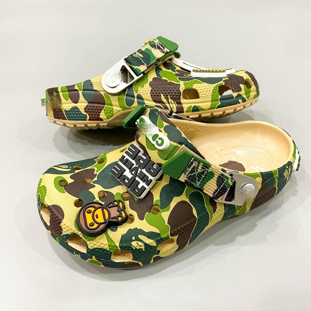 Classic Bape Ape Camo children's sandals, striped sandals for boys, free with 3d charm to decorate the sandals