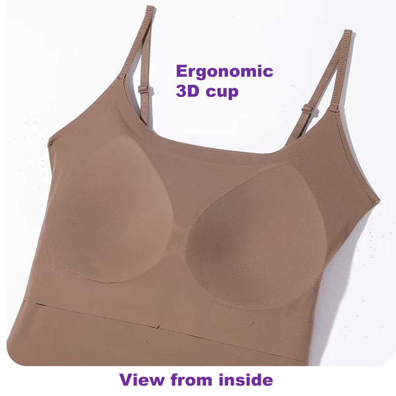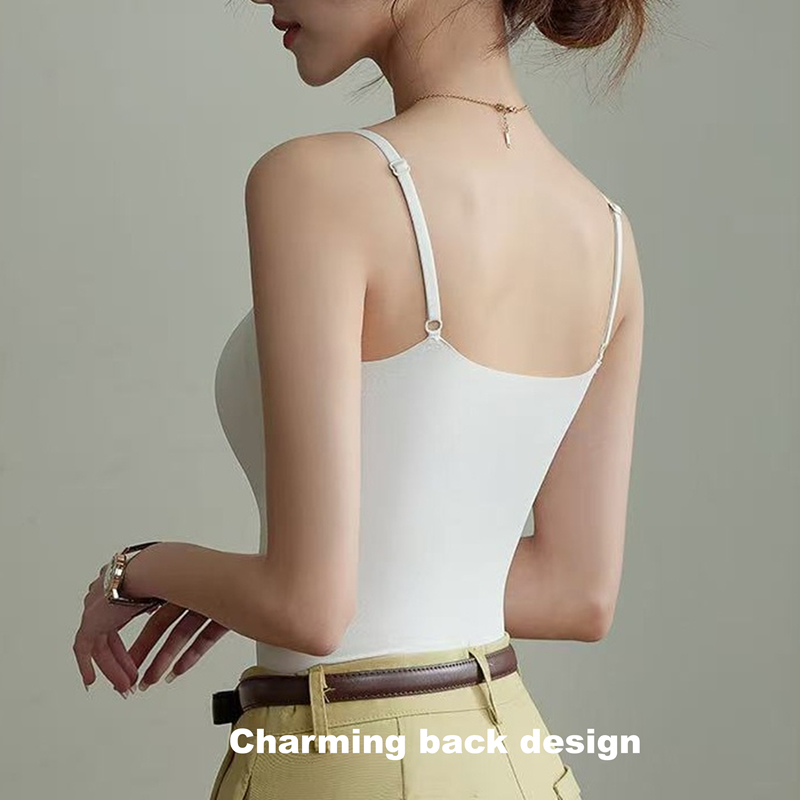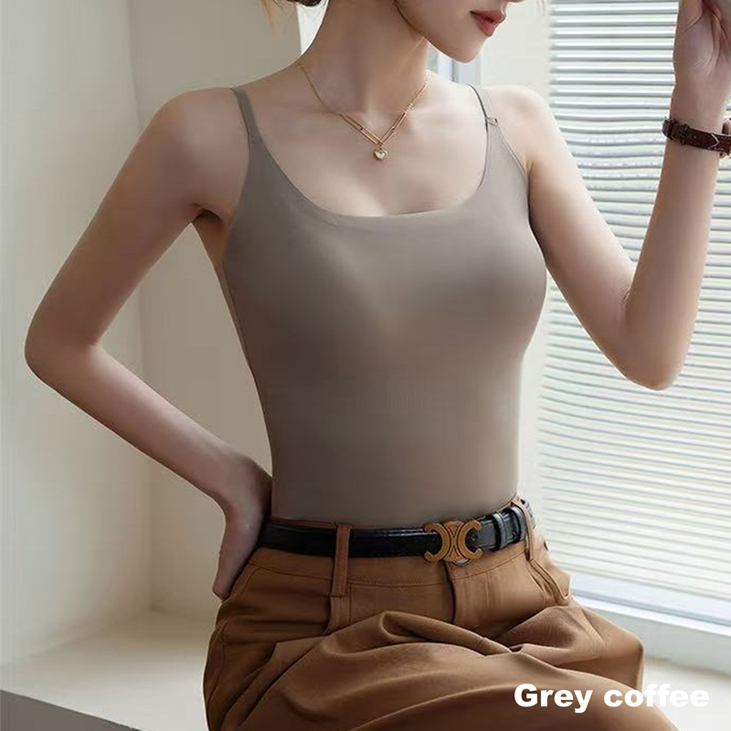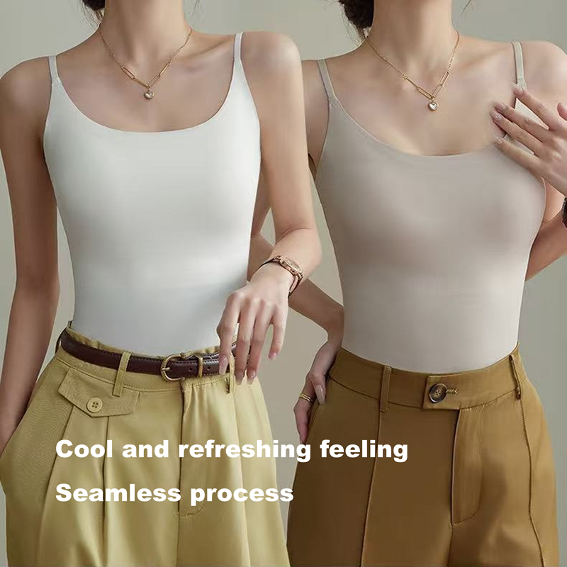 CLASSYAMY Ice silk fabric fixed cup women long style camisole