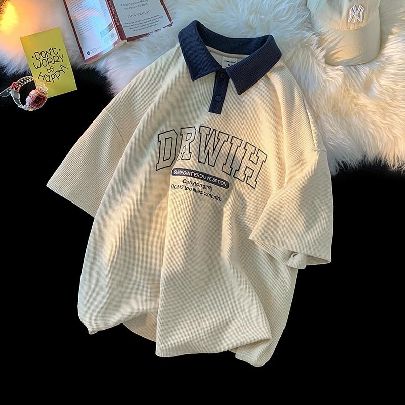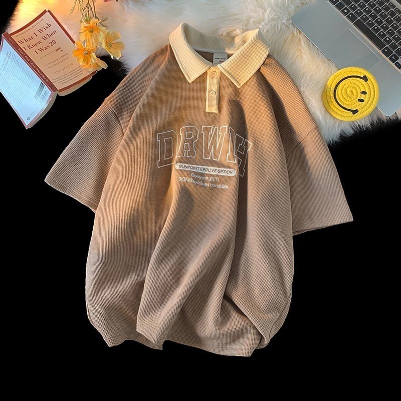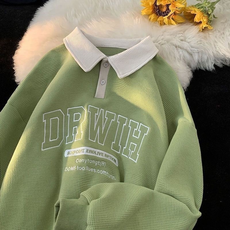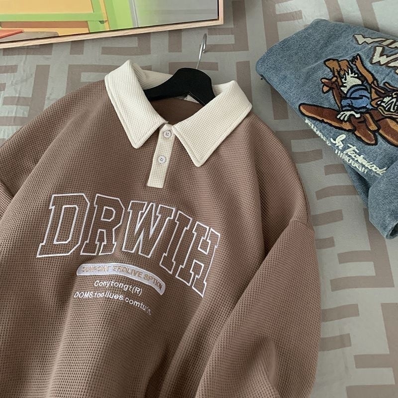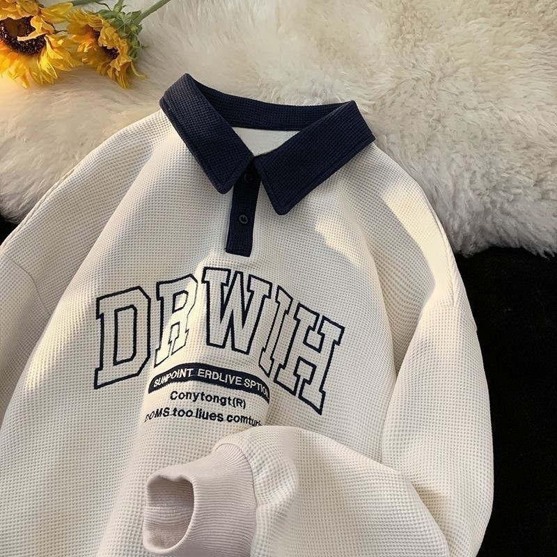 CLIFF Waffle Lapel Polo Sweatshirt Men Fall Thin College Style Couple Basketball Baseball Polo T Shirt Lelaki Berkolar