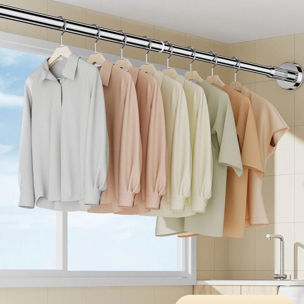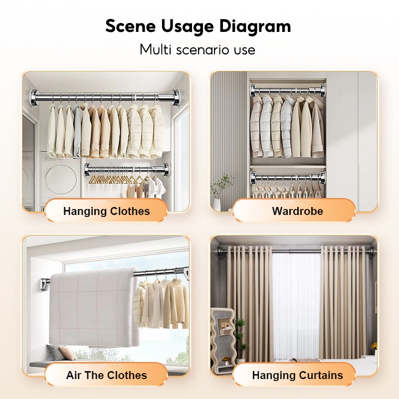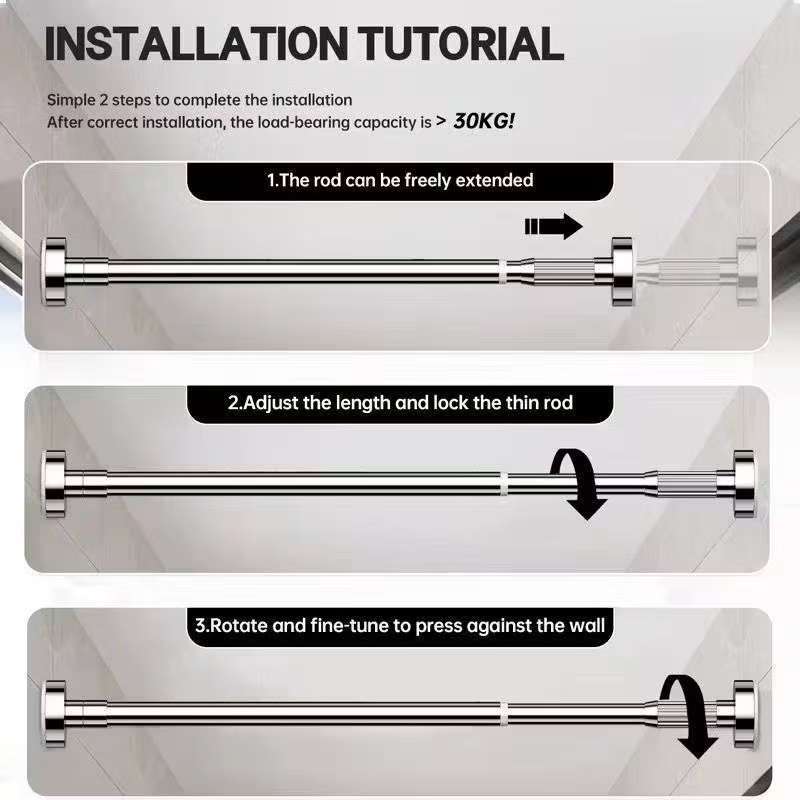 Clothes Drying Rack Adjustable Stainless Steel/penyangkut baju/Curtain Rod No Drilling batang tirai晒衣架窗帘杆