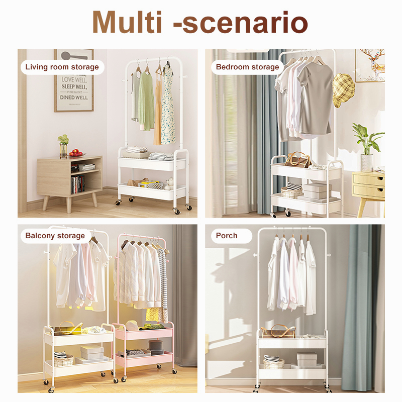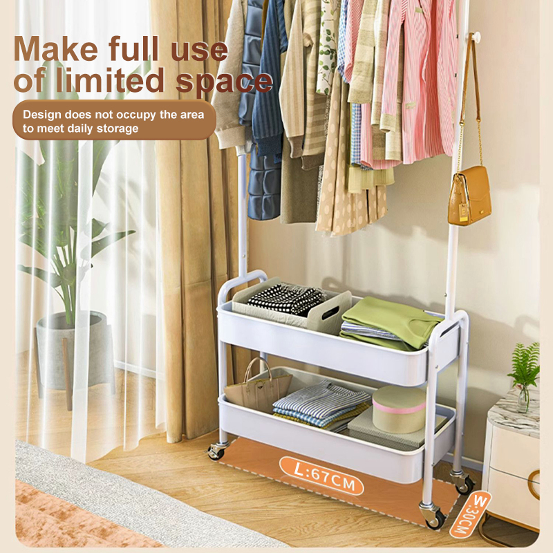 Clothes Rack Trolley Steel Clothes Hanger Rack With Wheel Space Saving Storage Rak Baju Gantung 挂衣架