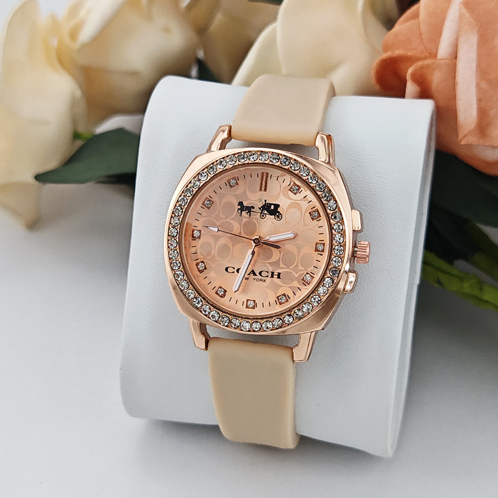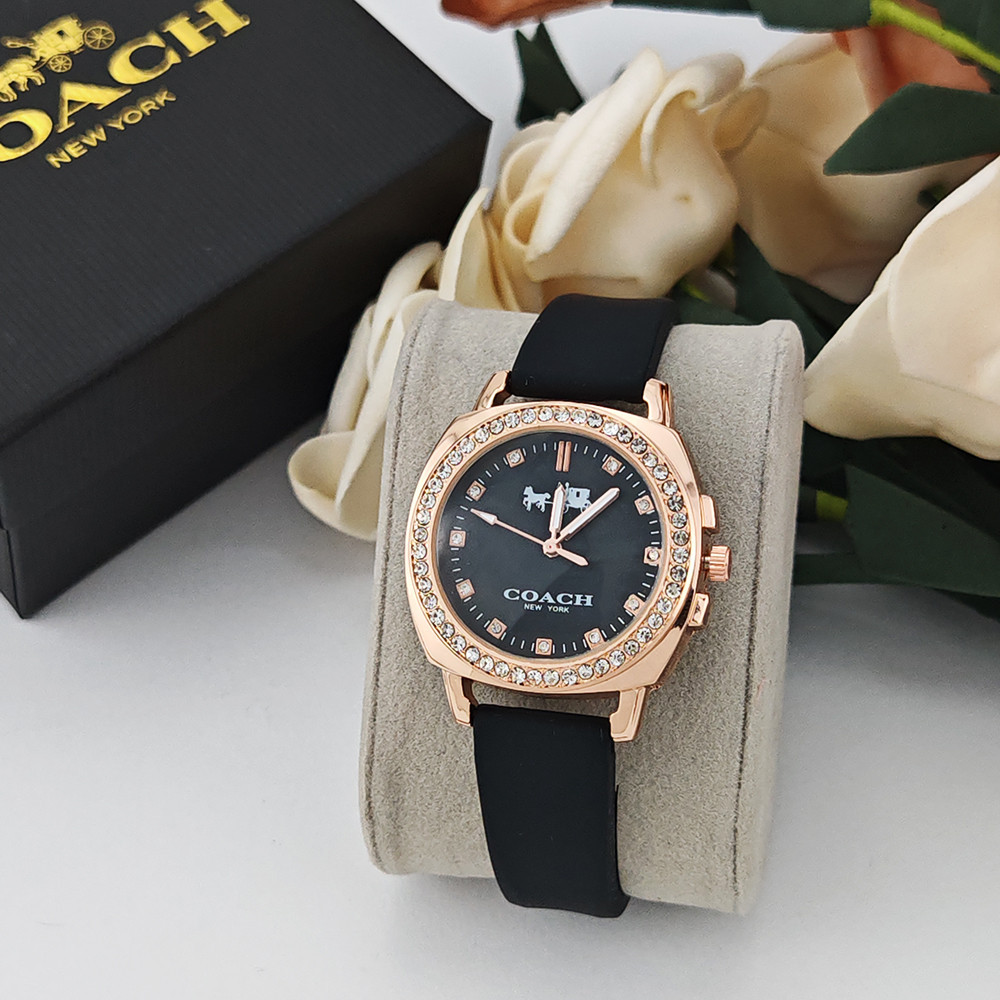 Coach Fashion Classic Carriage Rhinestones Rubber Quartz Watch