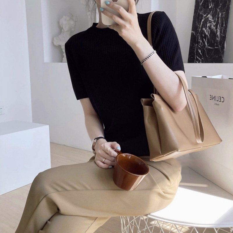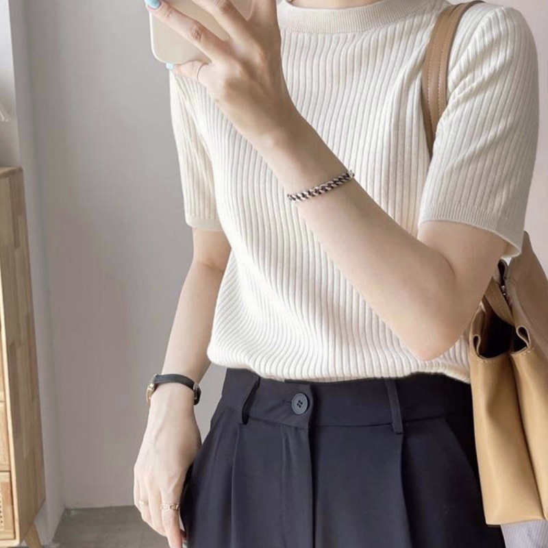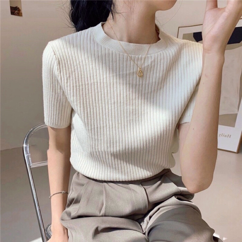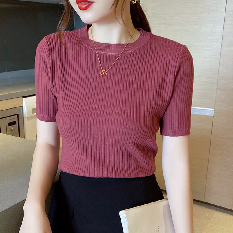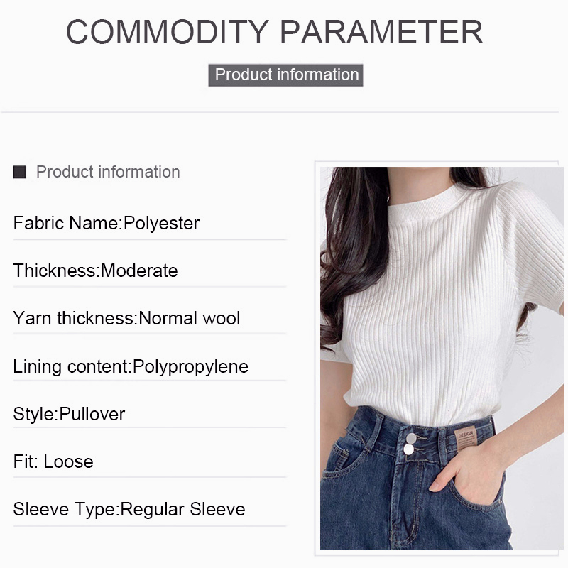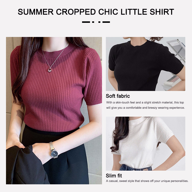 【COD Malaysia Delivery】Pullover Sweater Women Autumn Winter Slim Fit Top Short Sleeve Knitted All-match Underlay Top