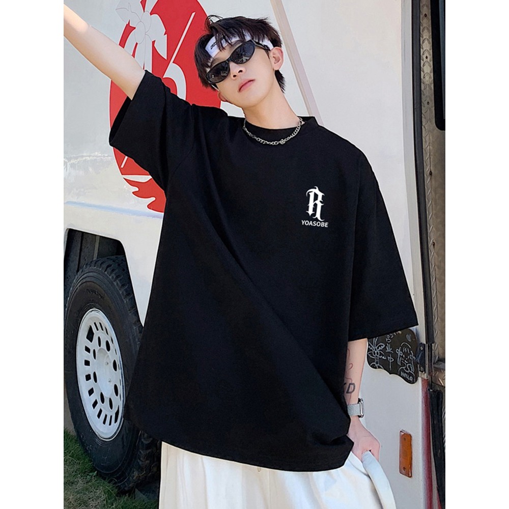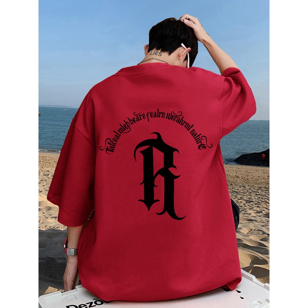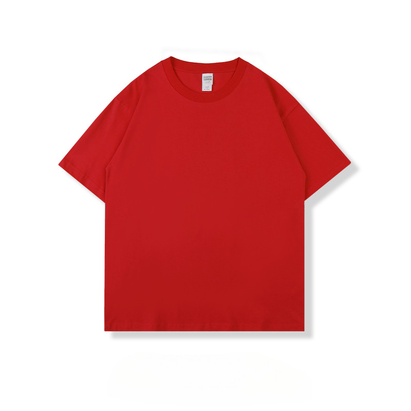 COd Red short sleeved t-shirt men's pure cotton heavyweight couple half sleeved American retro oversized
