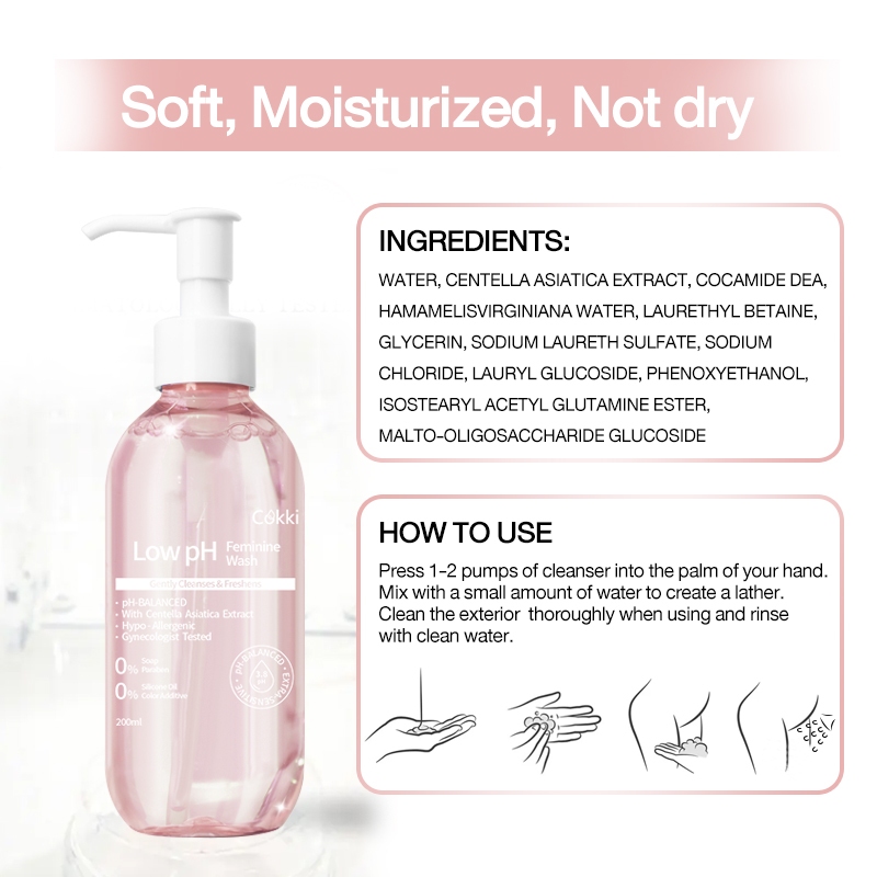 Cokki Low pH Low Feminine Hygiene Wash Gentle(200ML)-pH3.8 | Pure natural mineral water