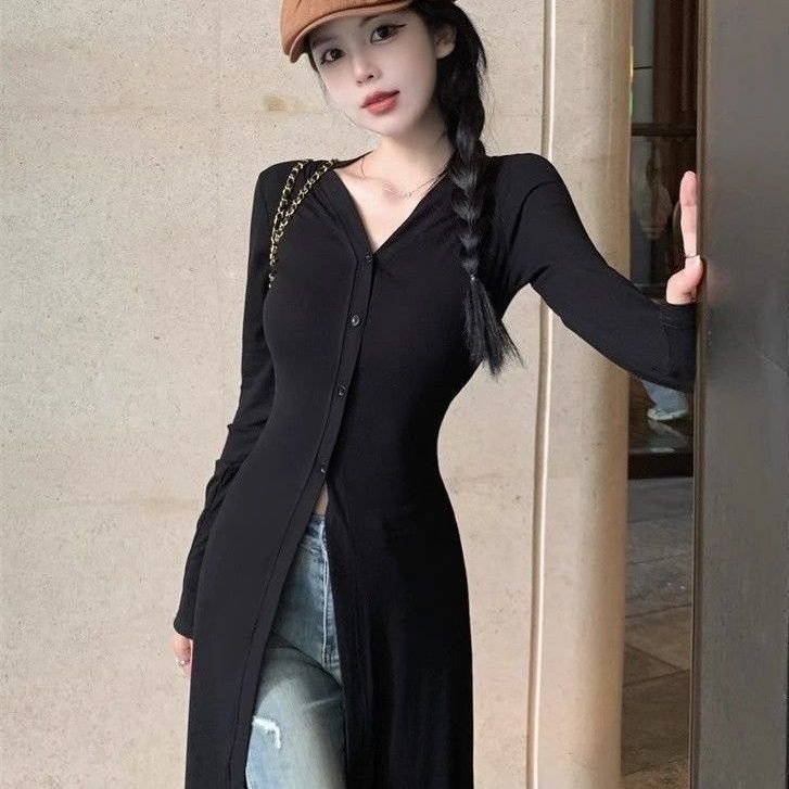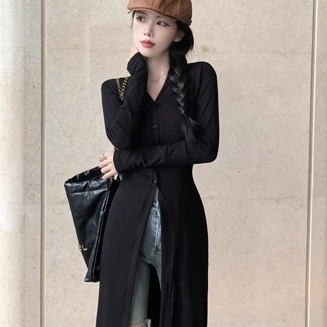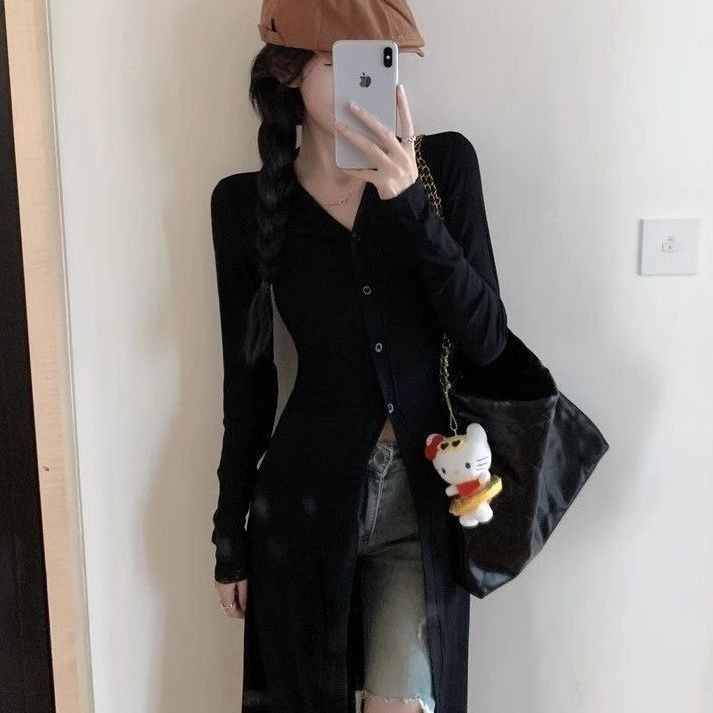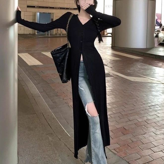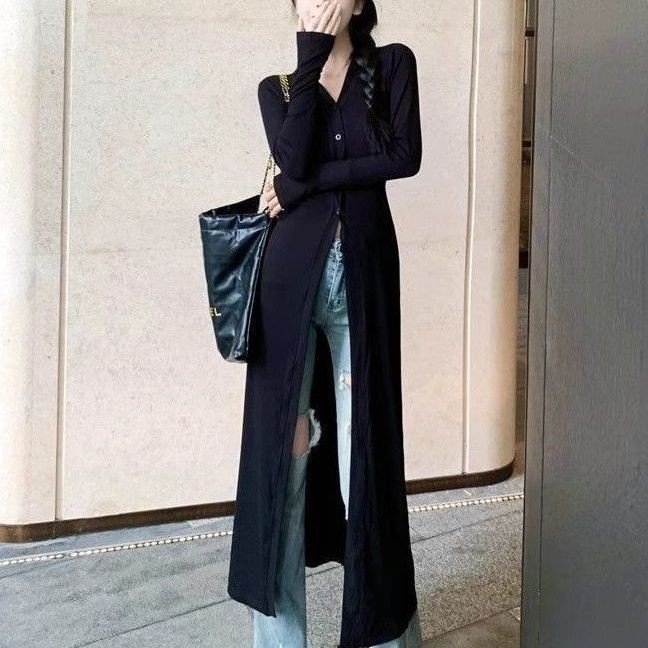 Cold Style Long Ice Silk Cardigan for Women Fashionable and Versatile Lazy and Slimming Top