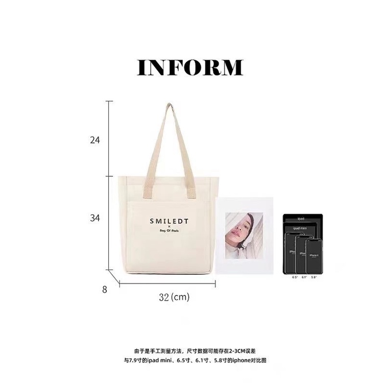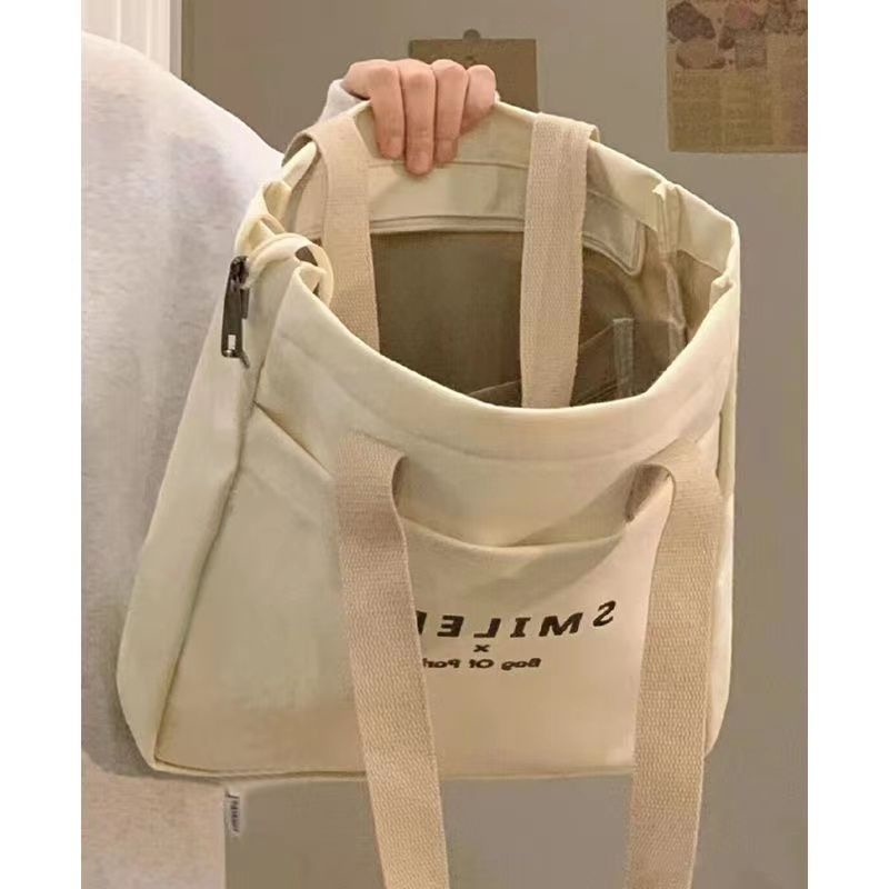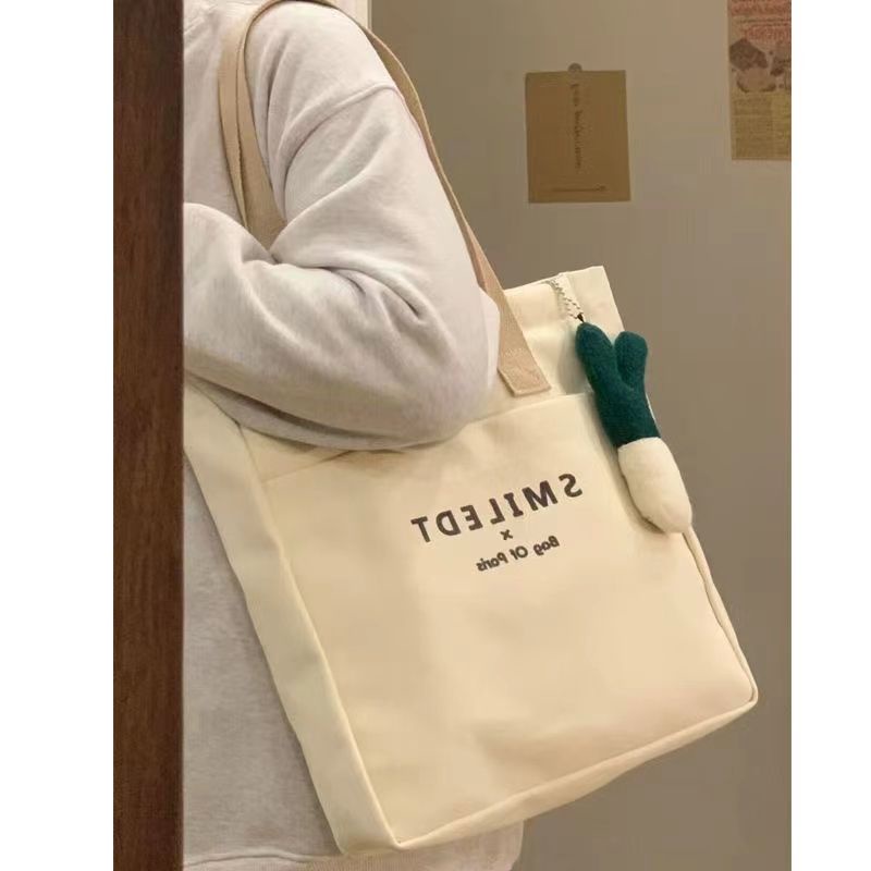 College Students Class Canvas Bag Female New Style Casual All-Match Shoulder Bag Large Capacity Work Commuter Tote Bag