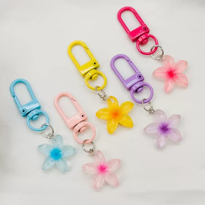 Colorful Transparent Plumeria Flower Keychain for Women – Cute Key Pendant Bag Hanging Accessories Headphone Decoration