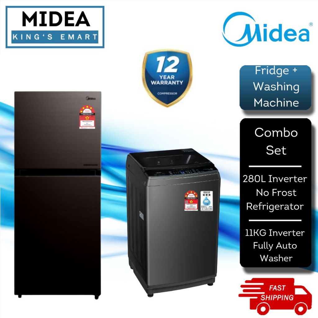 [COMBO SET] Midea 2 Door Inverter Refrigerator (280L / 400L) MDRT346MTB28-MY & 11KG Fully Auto Inverter Washer