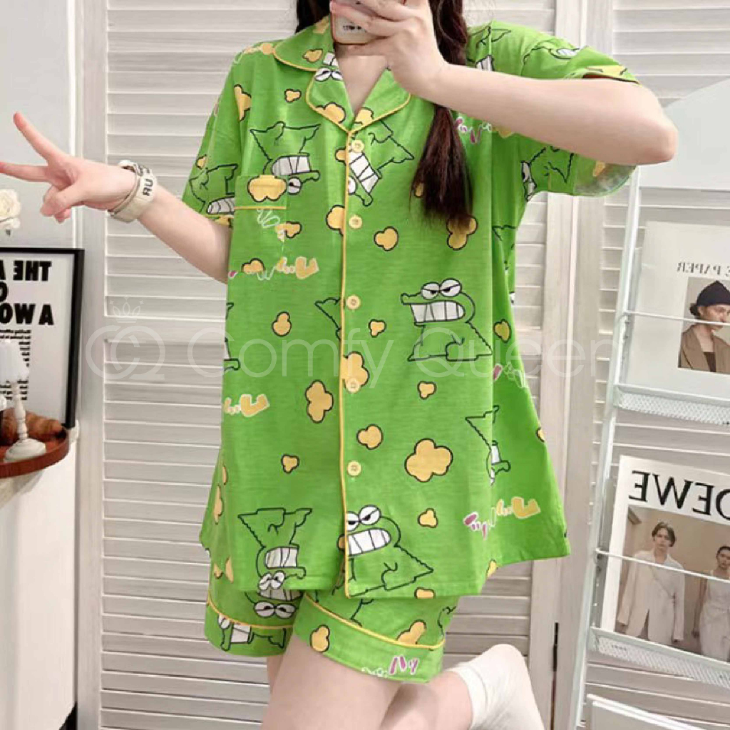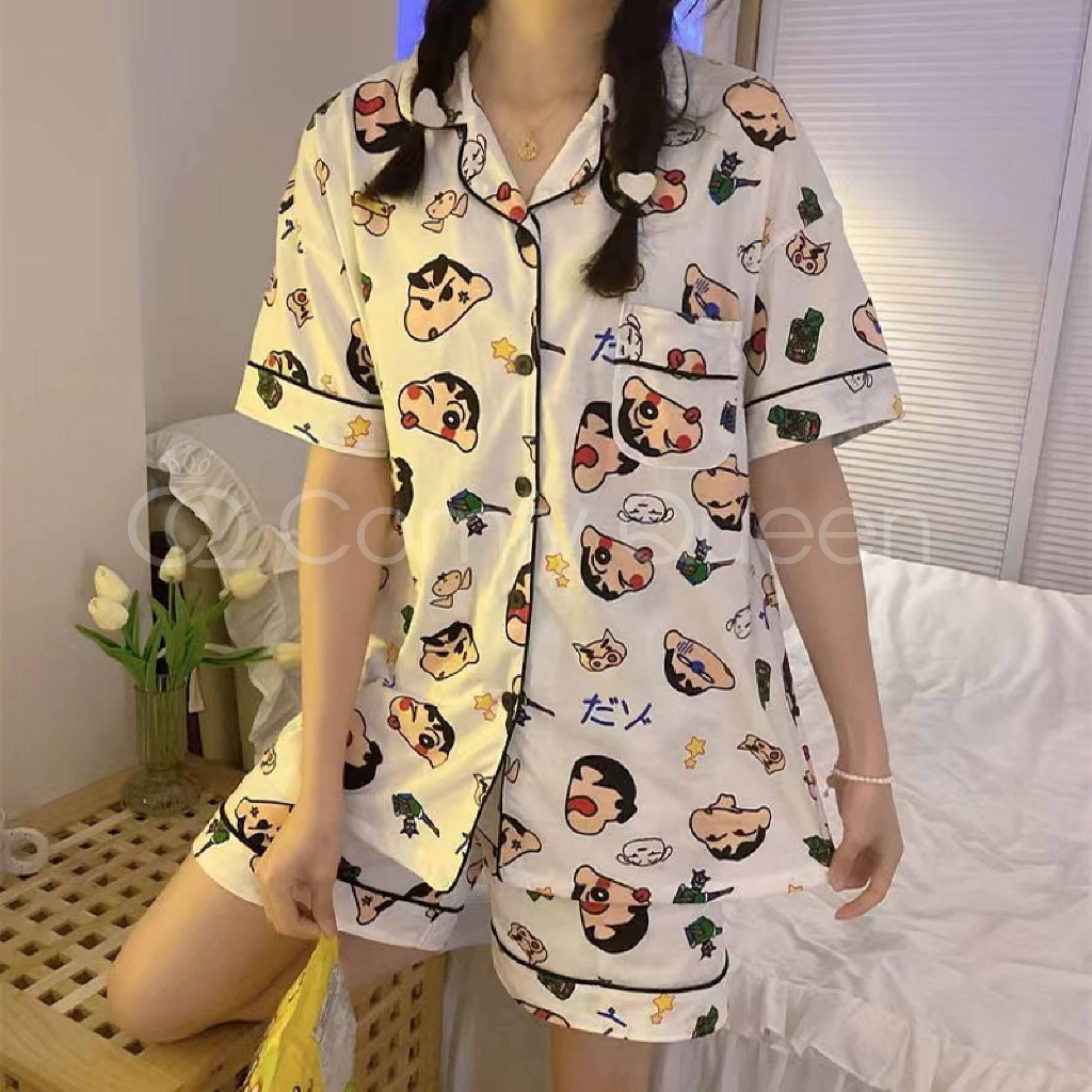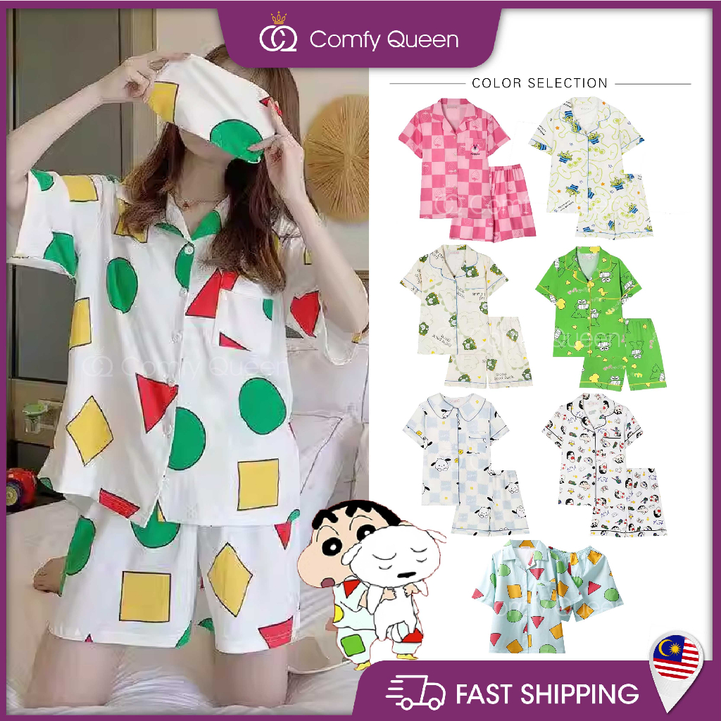 ComfyQueen Cotton Cute Cartoon Women Pajamas Baju Tidur Kartun Crayon