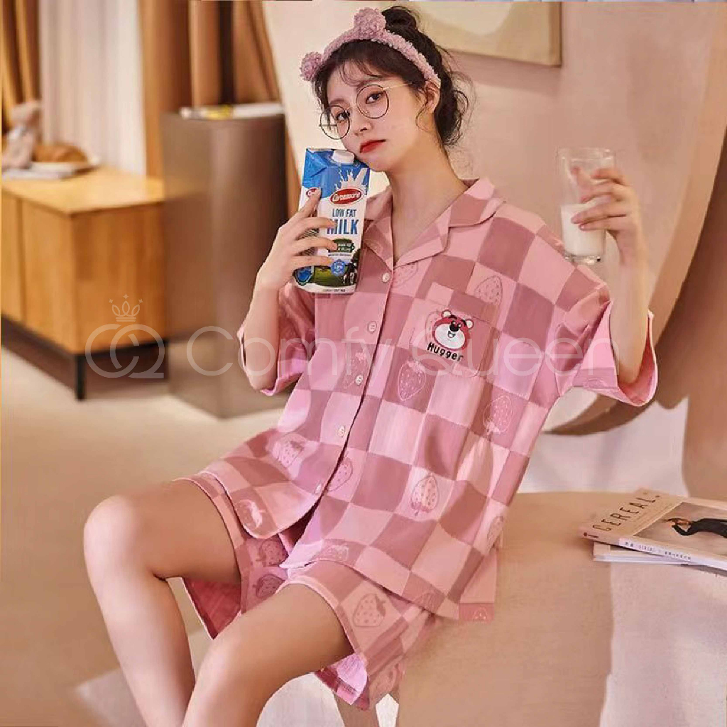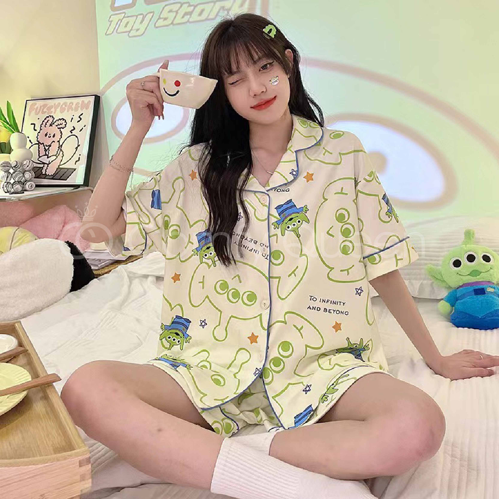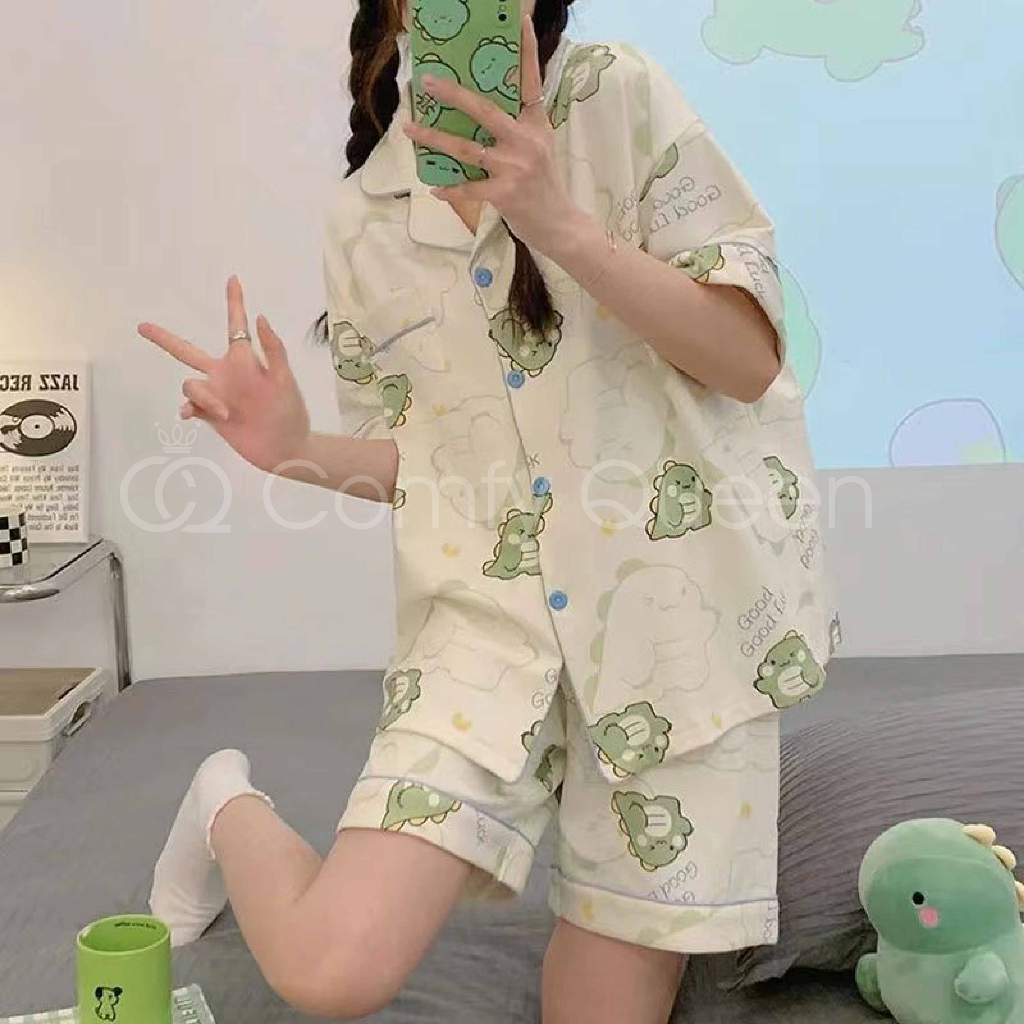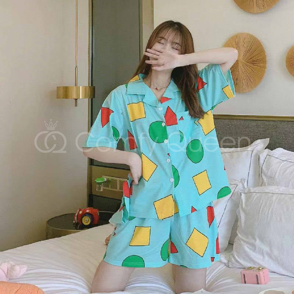 ComfyQueen Cotton Cute Cartoon Women Pajamas Baju Tidur Kartun Crayon