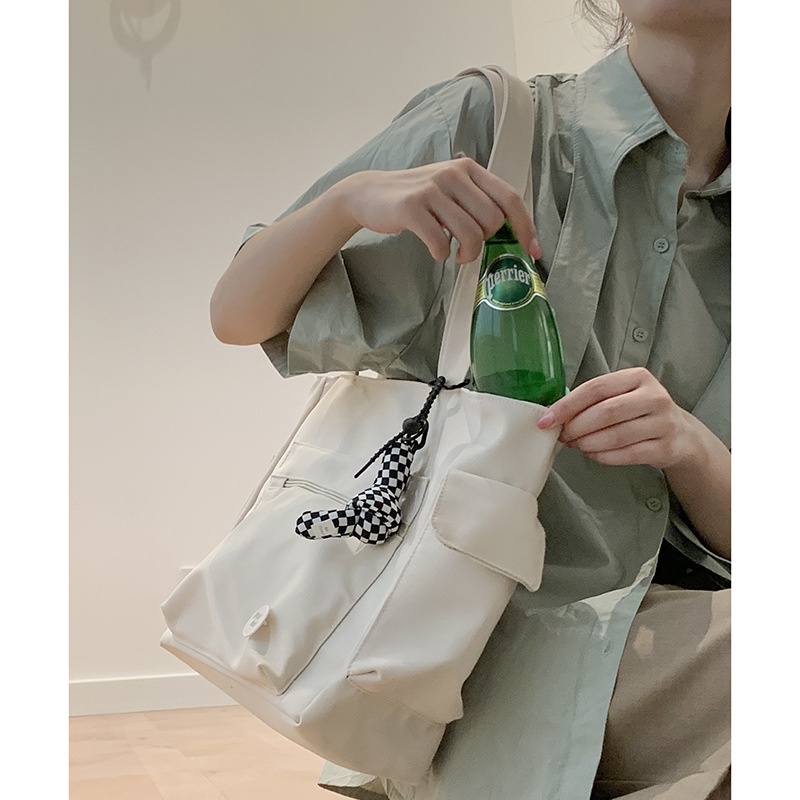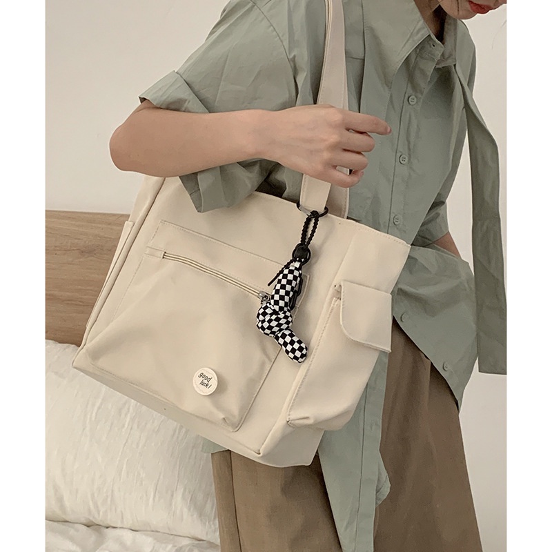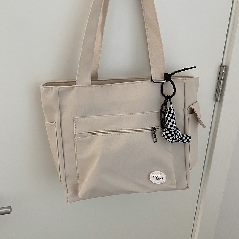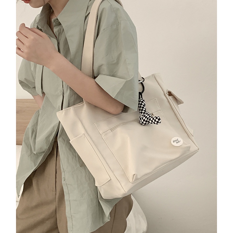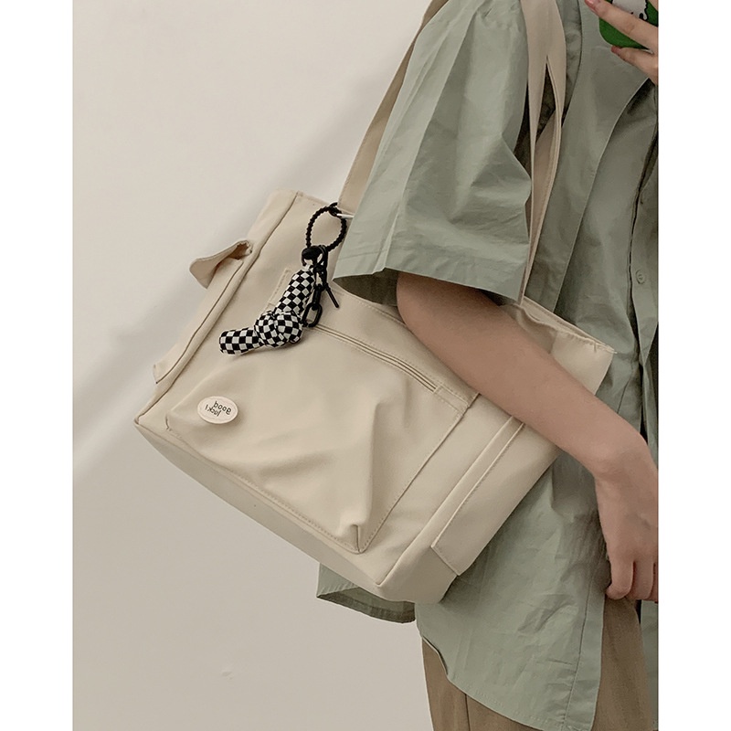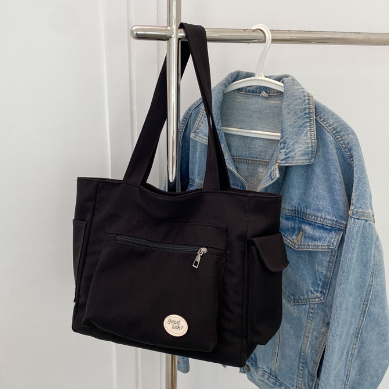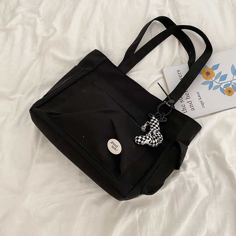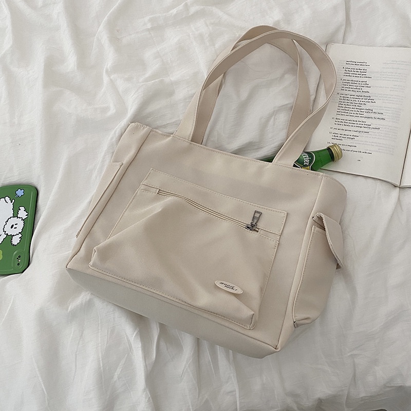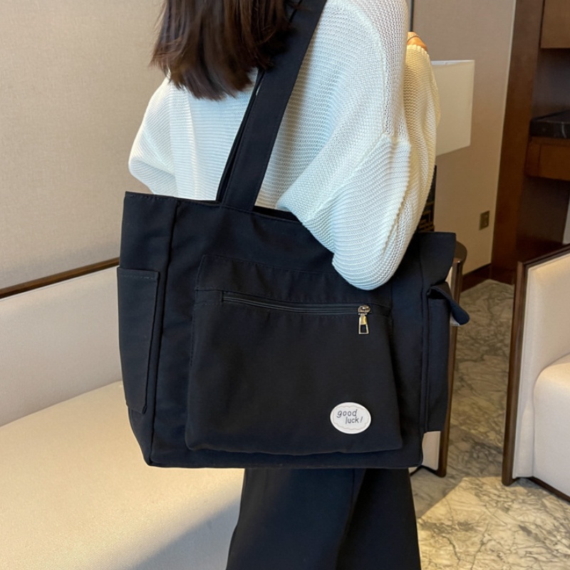 Commuting Simple Canvas Bag Japanese Ins Wind Students Class Large Capacity Shoulder Bag Female Solid Color Tote Bag