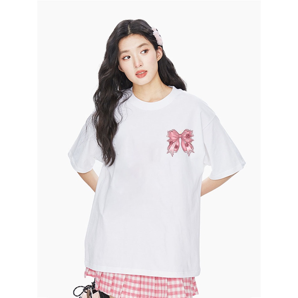 Cool camouflage butterfly print INS Korean style sweet summer T-shirt for women, versatile top, creative design.