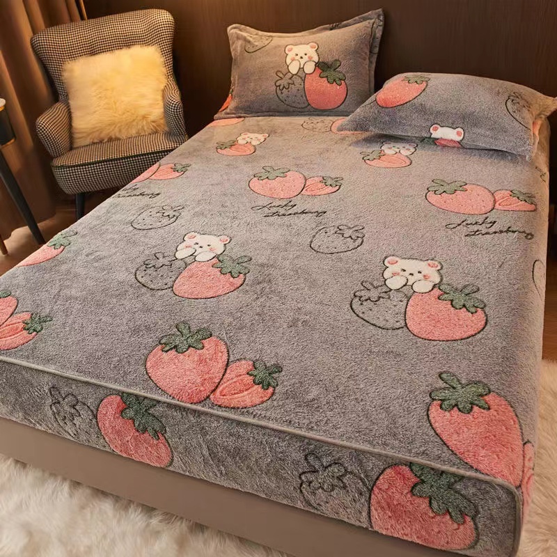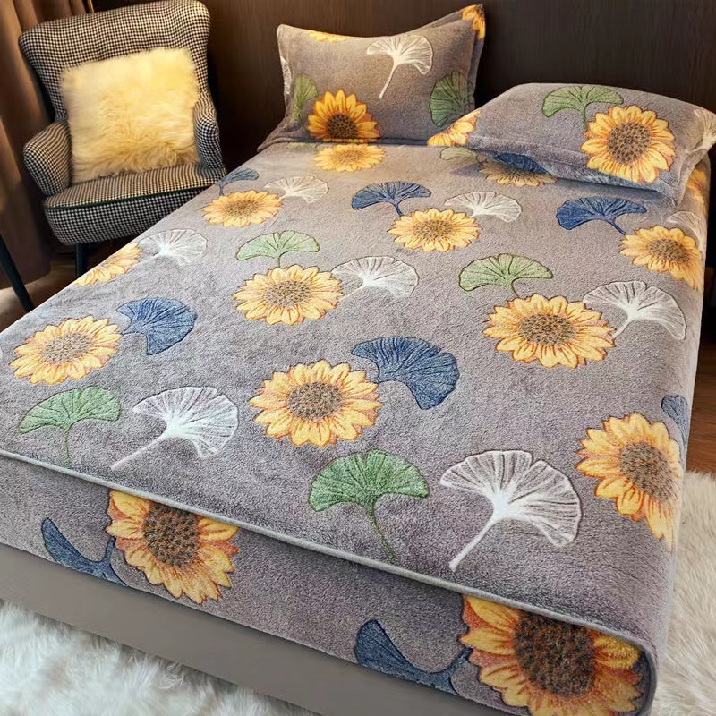 Coral Fleece Double-Sided Bed Sheet Single-Piece Winter Thickened Bedspread Fully Surrounded With fleeced milk fleeced bed cover